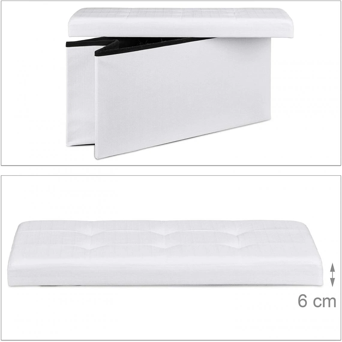 Points forts Helloshop26 Tabouret banquette pouf de rangement pliant coffre repose-pieds 76 cm lin blanc 13_0002337_6
