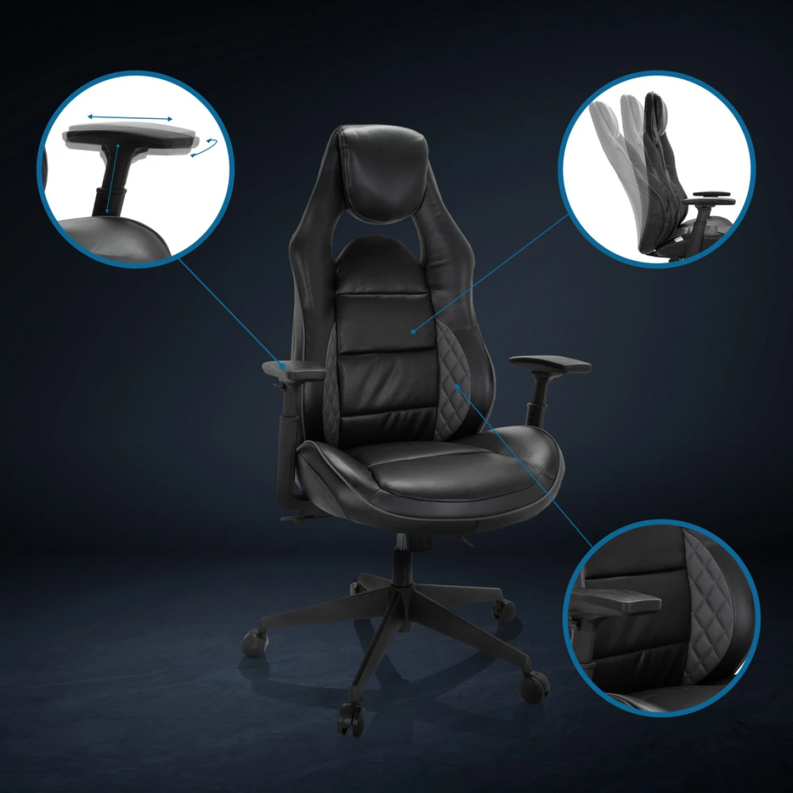 - Accoudoirs 3D avec coussinet de support souple: 5 possibilités de réglage de la hauteur, réglable radialement et verticalement