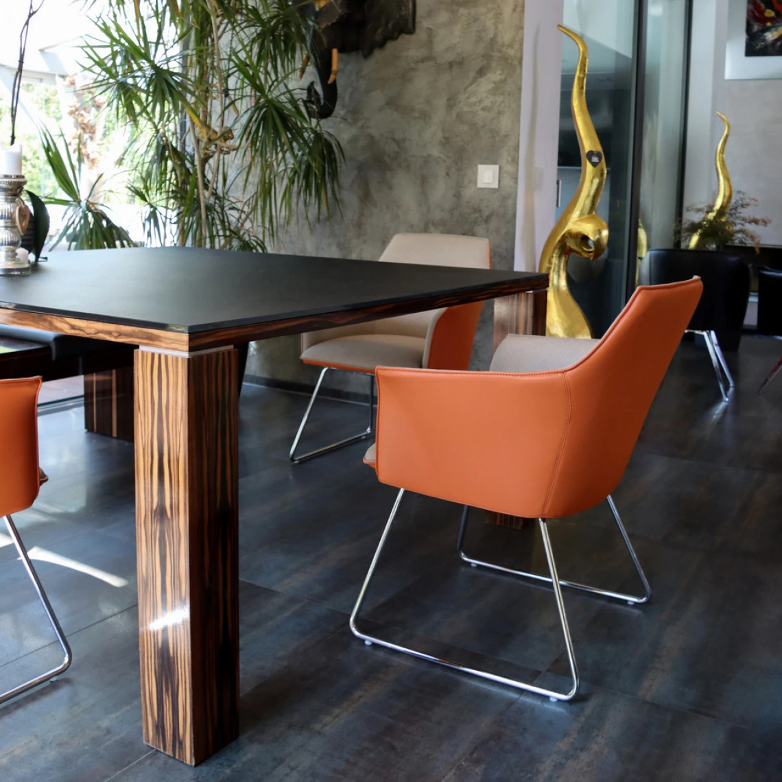 - Le piétement traîneau en acier chromé est non seulement beau à regarder mais également garantit une stabilité optimale.