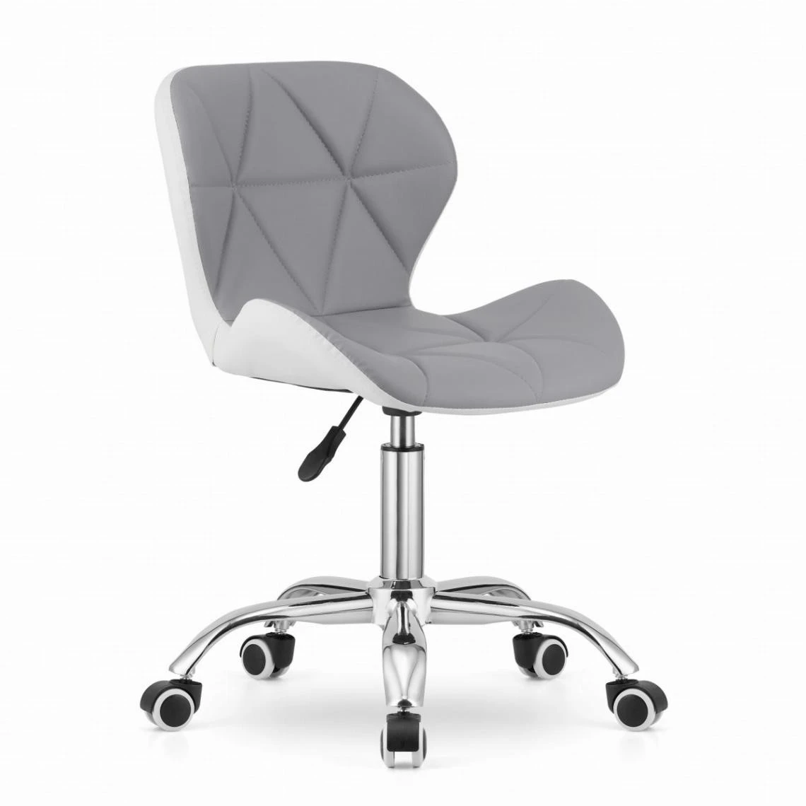 Ce fauteuil pivotant est doté d’une base à 5 bras sur roulettes caoutchoutées. Le siège pivotant est recouvert de similicuir. Grâce à l’utilisation d’un vérin pneumatique, il est possible de régler sa hauteur de 41,5 à 53 cm. Il convient parfaitement à une chambre d’enfant, un studio, un bureau, un cabinet. Fonctionnalité, confort d’utilisation et durabilité sont ses principaux avantages, POINTS FORTS: Style moderne, Réglage du siège en hauteur, Finition : assise et dossier sur la face supérieure en coloris gris et sur la face inférieure en coloris blanc, base chromée, Construction robuste, Faite en matériaux de haute qualité, CARACTÉRISTIQUES TECHNIQUES: Profondeur 55.5 cm, Largeur 47.5 cm, Hauteur 73.5 cm, Matériau : cuir synthétique, À monter soi-même, Photos des articles les plus fidèles possible, mais restant non contractuelles, les nuances de couleur et le rendu des matières présentés à l’écran pouvant être différents de la réalité