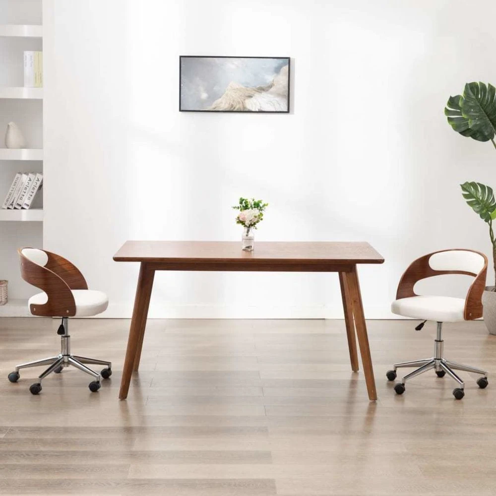 Points forts Icaverne Icaverne – Chaises de bureau reference Chaise pivotante de bureau Blanc Bois courbé et similicuir