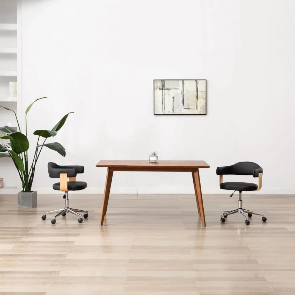 Icaverne – Chaises de bureau serie Chaise pivotante de bureau Noir Bois courbĂ© et similicuir