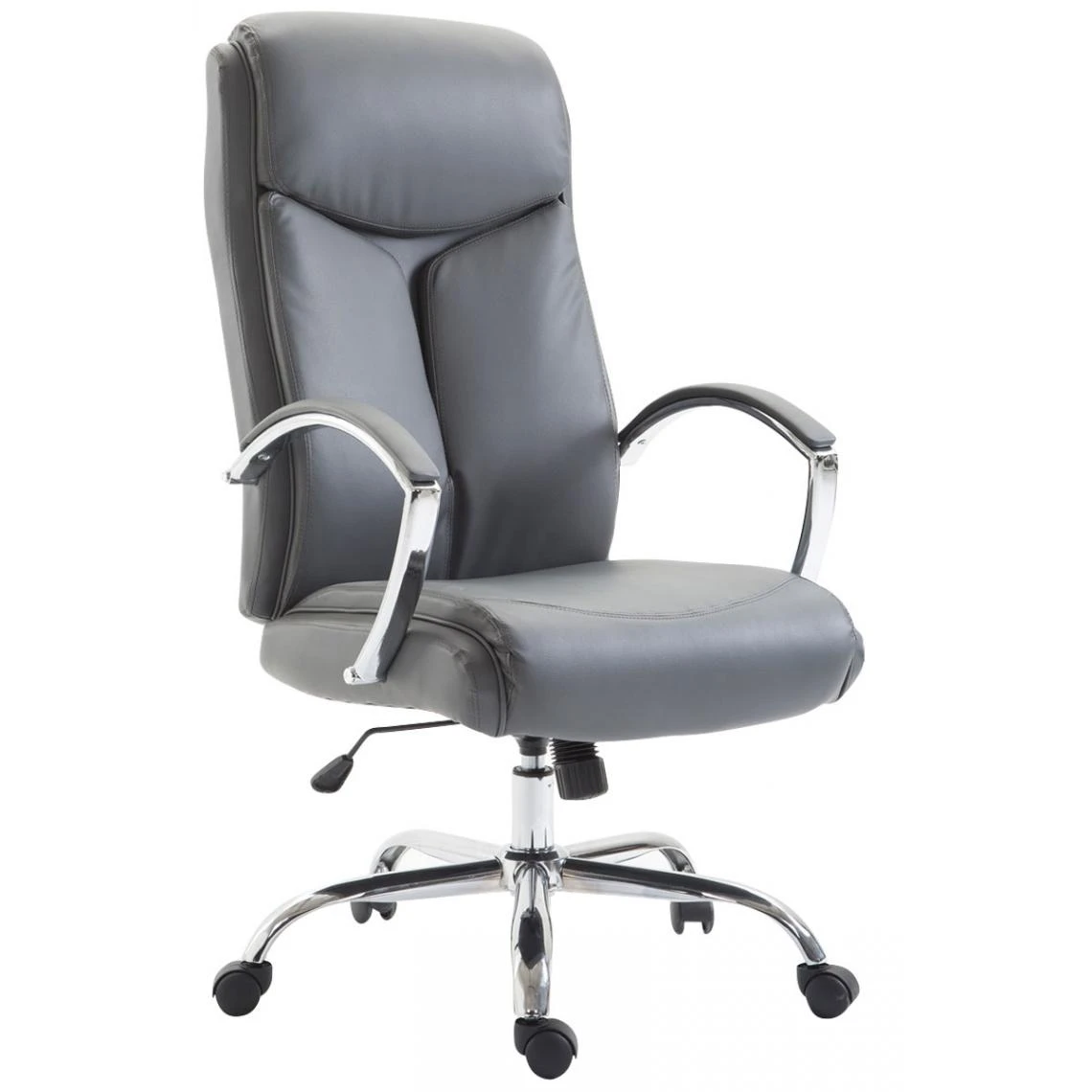 Le fauteuil de chef XL gamme Castries est la pièce idéale pour les personnes à la recherche d’une chaise de bureau design, confortable et solide en même temps. De plus, ce modèle peut supporter un poids allant jusqu’à 140 kg. Le revêtement en similicuir agréable garantit solidité et robustesse. Le similicuir a l’avantage d’être élastique et de retrouver toujours sa forme initiale. Ce qui assure la durée de vie du produit. La hauteur du siège se règle en continu à l’aide d’une manette en dessous de l’assise. Le mécanisme d’inclinaison intégré facilite le mouvement et la flexibilité. Le fauteuil de direction est posé sur une structure en métal chromé et sur 5 roulettes légères en plastique. Le fauteuil se déplace facilement sur tous les types de sol.
