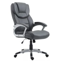 Cette chaise de bureau est idéale pour des personnes de grande taille car grâce à son système de vérin à gaz elle peut supporter des charges jusqu’à 180 kg. La forme ergonomique de son assise et de son dossier ainsi que le rembourrage et le revêtement en similicuir font d’elle une chaise de bureau très confortable. Sa hauteur réglable vous permet de l’adapter aussi bien à votre taille qu’à la hauteur de votre table, sa capacité à pivoté sur 360° vous donne une flexibilité sur votre position. Le rembourrage de bonne qualité et le revêtement en similicuir de bonne qualité vous garantissent une longue durée d’utilisation. Elle est très facile à nettoyer, vous aurez juste besoin d’un chiffon en coton légèrement humide. La chaise repose sur un piètement en plastique solide doté de 5 roulettes légères qui vous permettent de vous mouvoir facilement. Que ce soit sur des sols lisses ou tapissés, vous vous déplacer avec cette chaise sans contraintes. Revêtement du siège: similicuir (100 % polyuréthane)