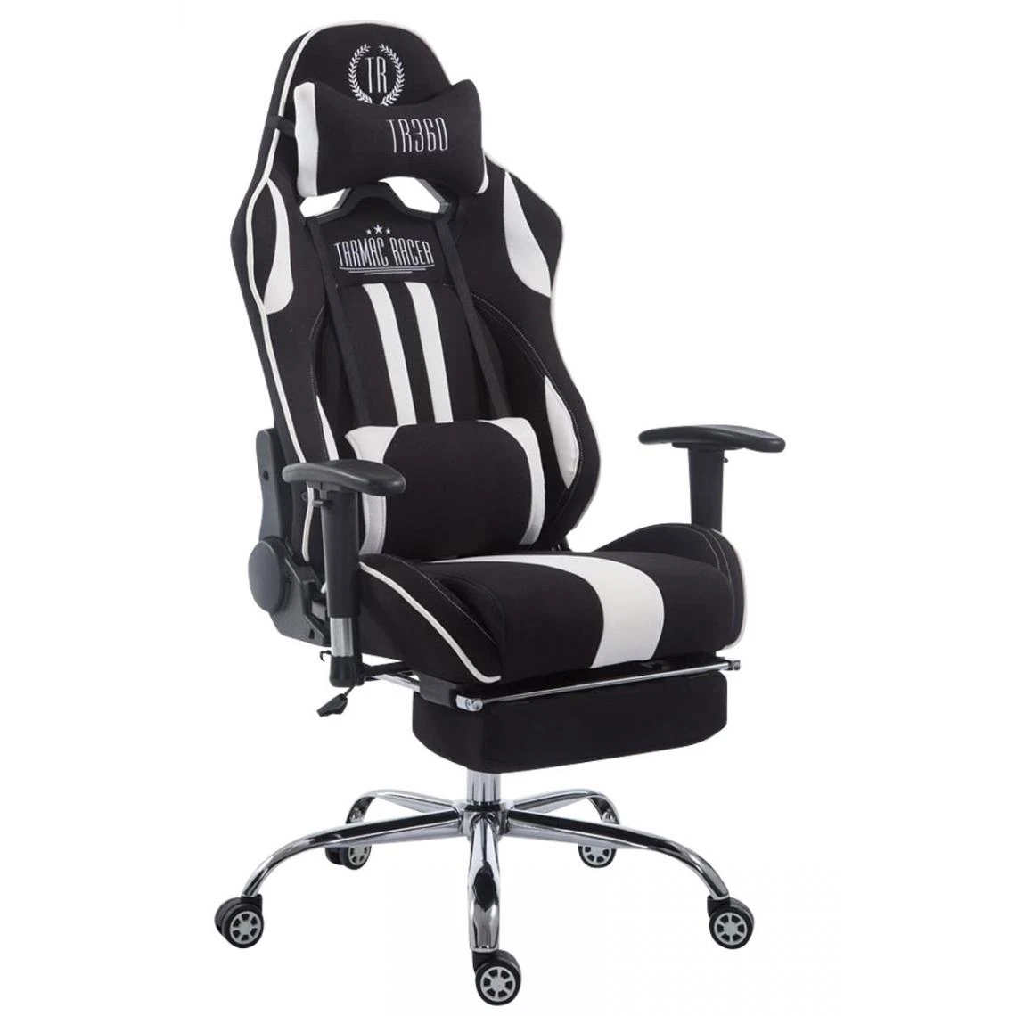 Ce fauteuil allie le confort et la fonctionnalitĂ©. Grâce au revĂŞtement en tissu et un rembourrage gĂ©nĂ©reux, cette chaise de Gamer est particulièrement confortable, mĂŞme après de longues heures d’utilisation. Les coussins supplĂ©mentaires, au niveau des lombaires et de la nuque, renforce le confort de ce fauteuil de bureau et lui confère un style moderne et sportif. Les coussins permettent Ă©galement de garder une position correcte pendant le travail, le jeu ou durant une petit pause relaxante. La hauteur du siège se règle selon les besoins individuels. Le dossier peut ĂŞtre inclinĂ© jusqu’Ă la position horizontale. Le fauteuil repose sur un support Ă 5 branches en mĂ©tal chromĂ© munies de roulettes lĂ©gères. Ces dernières sont adaptables Ă tous les types de sols. Ce modèle existe en deux versions ; une sans repose-pieds et l’autre avec un repose-pieds tĂ©lĂ©scopique Ă tirer au besoin pour un moment de dĂ©tente Ă mĂŞme son lieu de travail.