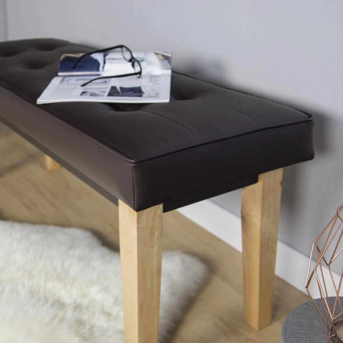 Banc en cuir synthétique matelassé au design naturel