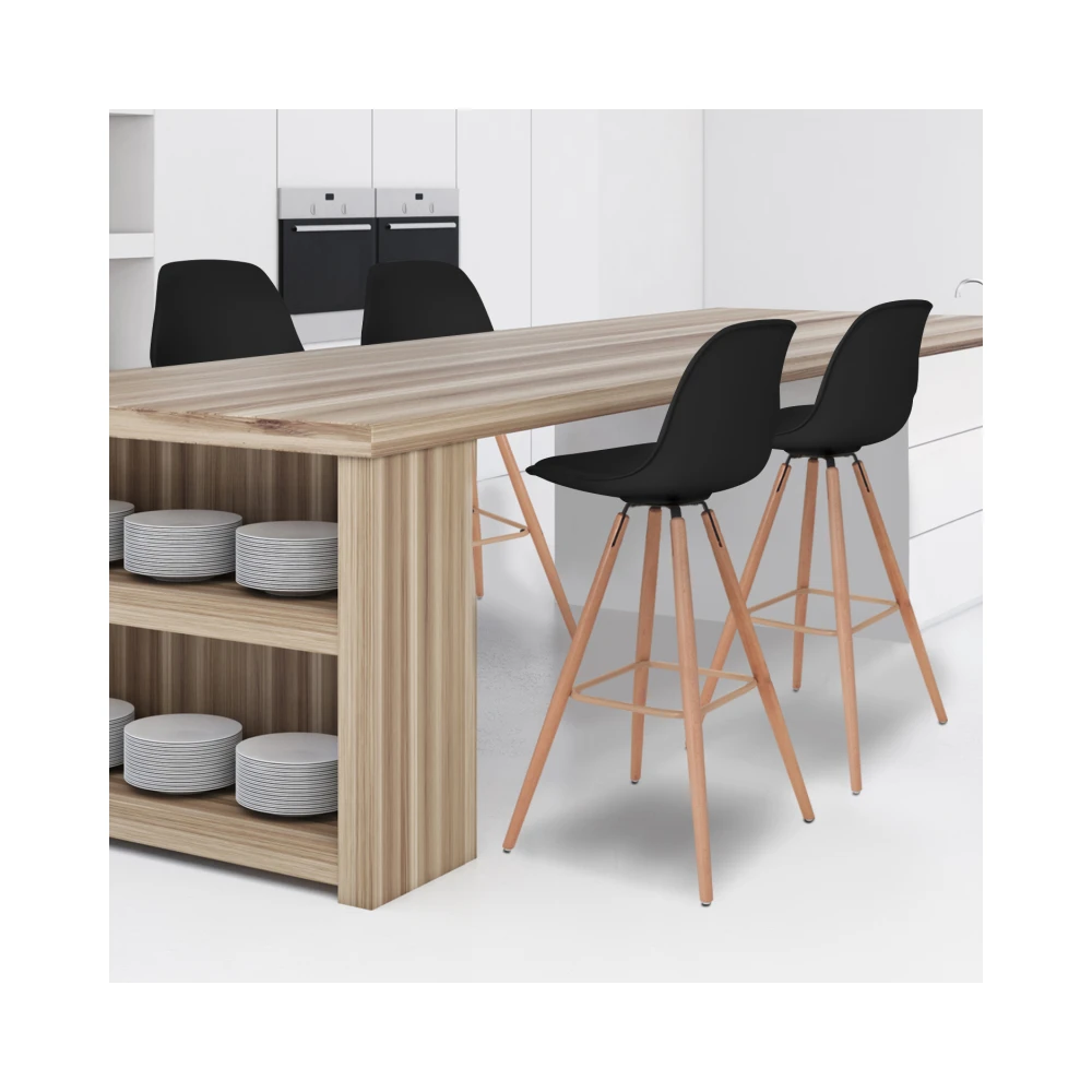 Avec leur design scandinave, ces 4 tabourets de bar SARA ultra-tendances apporteront une ambiance à la fois contemporaine et chaleureuse à votre intérieur !Idéales dans une salle à manger ou une cuisine américaine, ces chaises hautes de bar confortables trouveront forcément leur place dans toutes les pièces de la maison.Elles offrent un excellent confort d’assise avec leur dossier courbé en polypropylène et leur assise rembourrée.Le design nordique s’invite chez vous !Parfaitement stables, elles sont munies de 4 pieds en bois de hêtre aux finitions travaillées.Dimensions : L.38,5xL.33xH.95cmDimensions de l’assise : Longueur 38,5 cm x profondeur 33 cmHauteur du dossier : 26 cmVendu en lot de 4 tabourets coloris noir.Coloris disponibles sur notre boutique en ligne :BLANCNOIRGRIS
