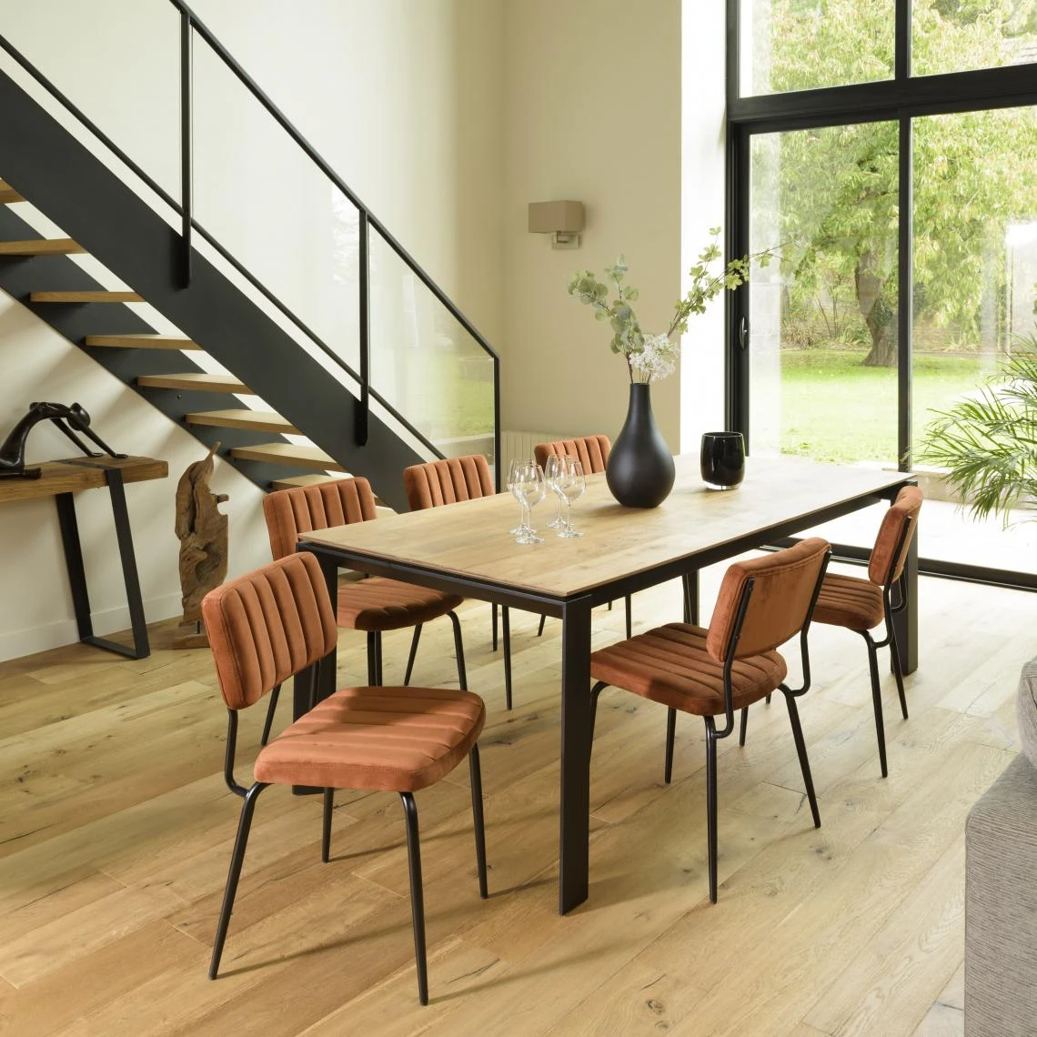 Points forts MACABANE Chaise velours orange pieds métal noir