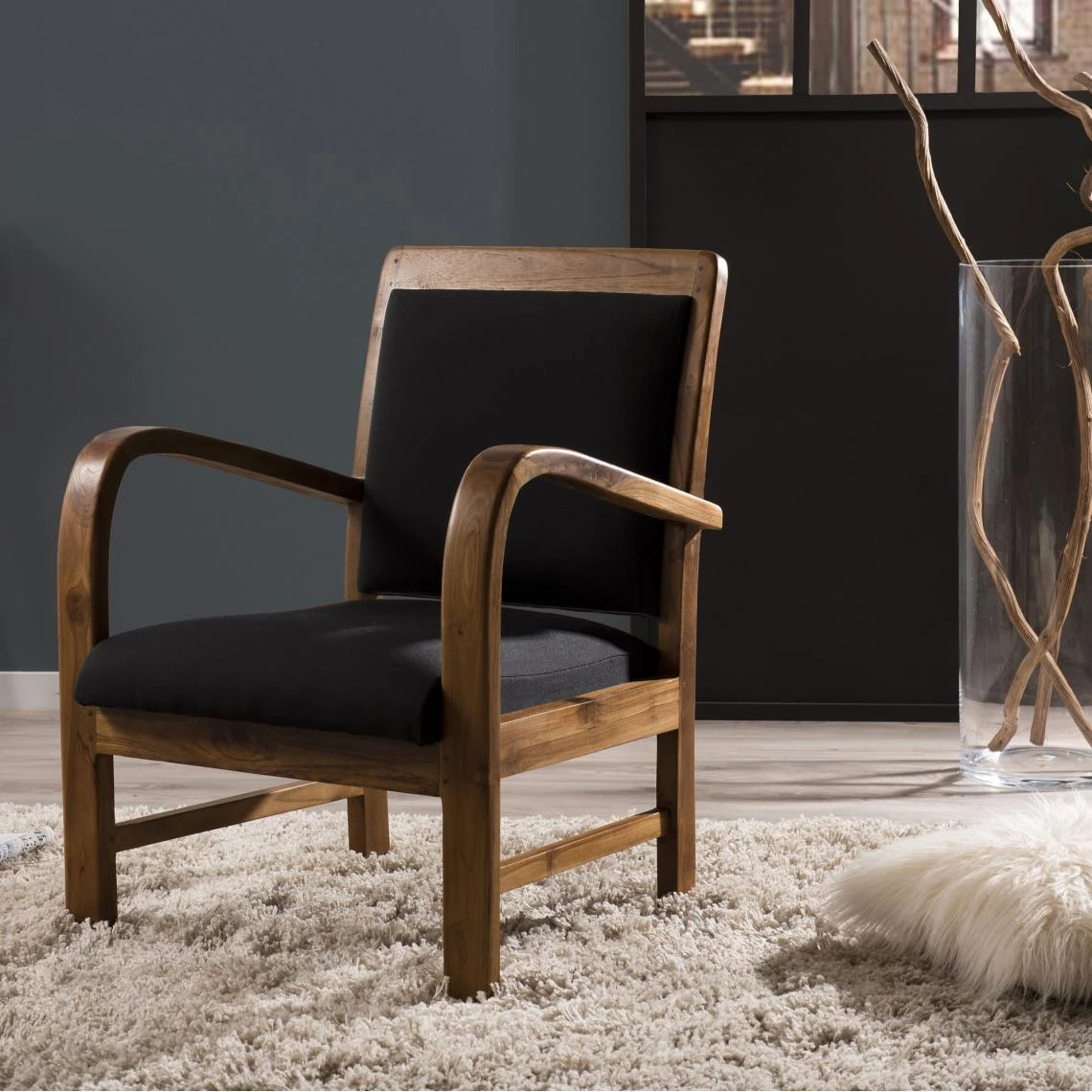 Points forts MACABANE Fauteuil en teck et coton uni Scandi – Noir
