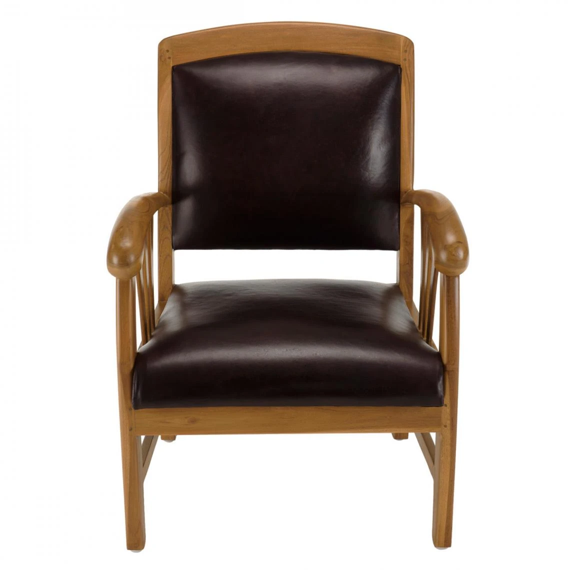 Points forts MACABANE Fauteuil en teck et cuir style colonial – Marron