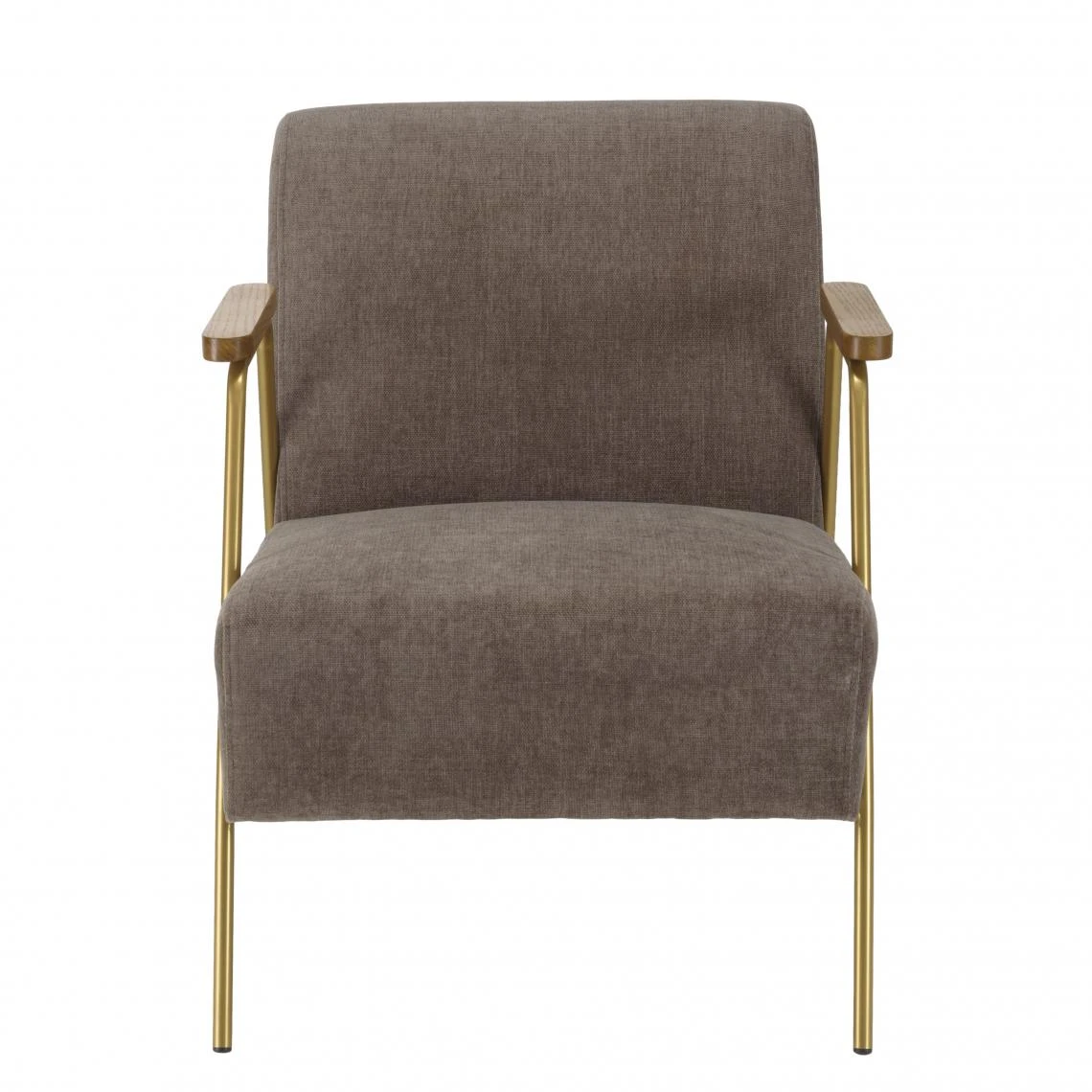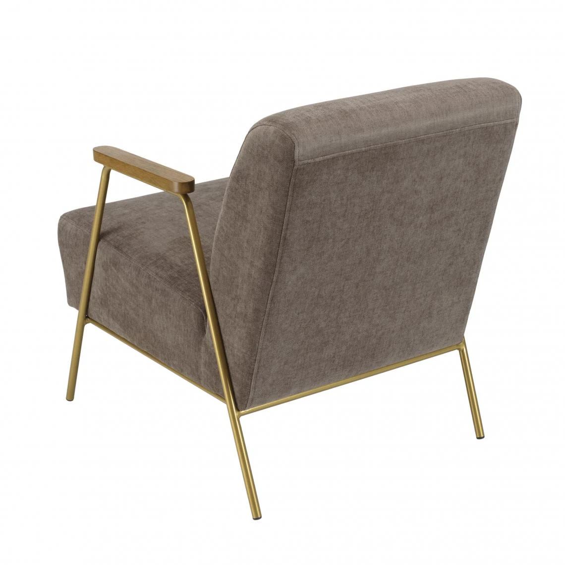 Points forts MACABANE Fauteuil lounge tissu taupe métal doré accoudoirs bois