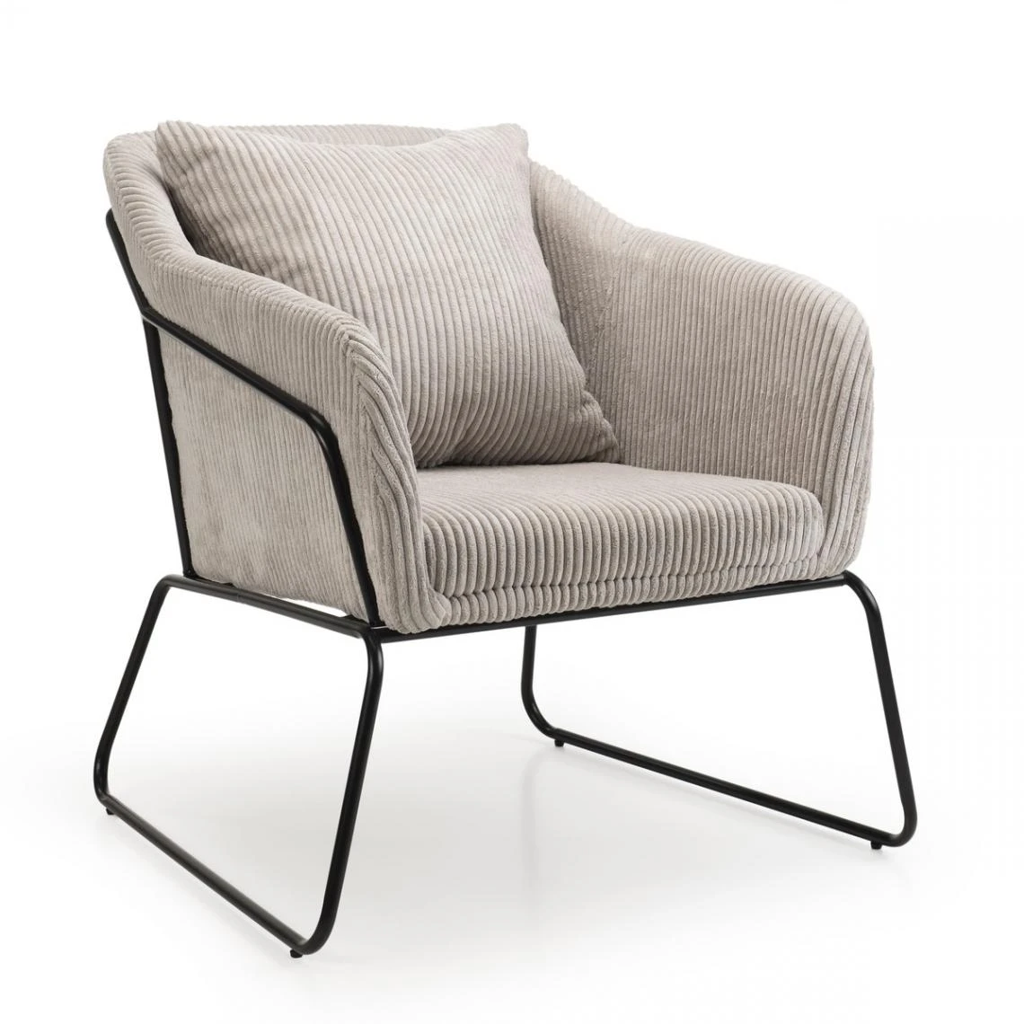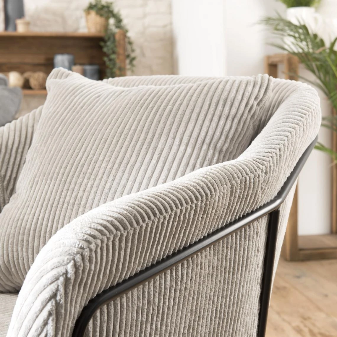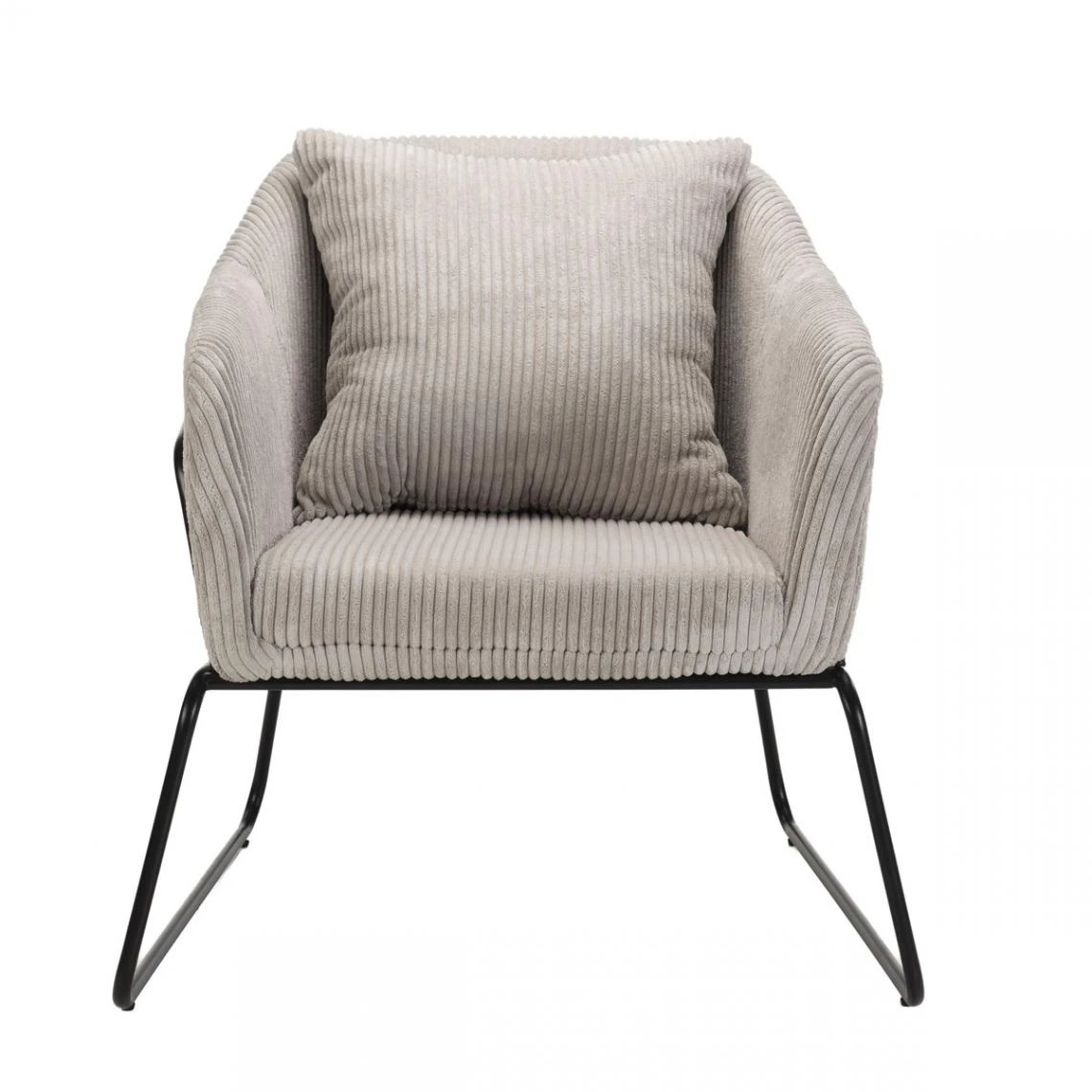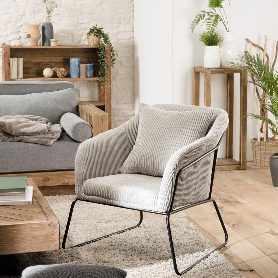 Points forts MACABANE Fauteuil Tissu AGATHE Velours Cotelé Gris Perle Pieds Évasés Métal
