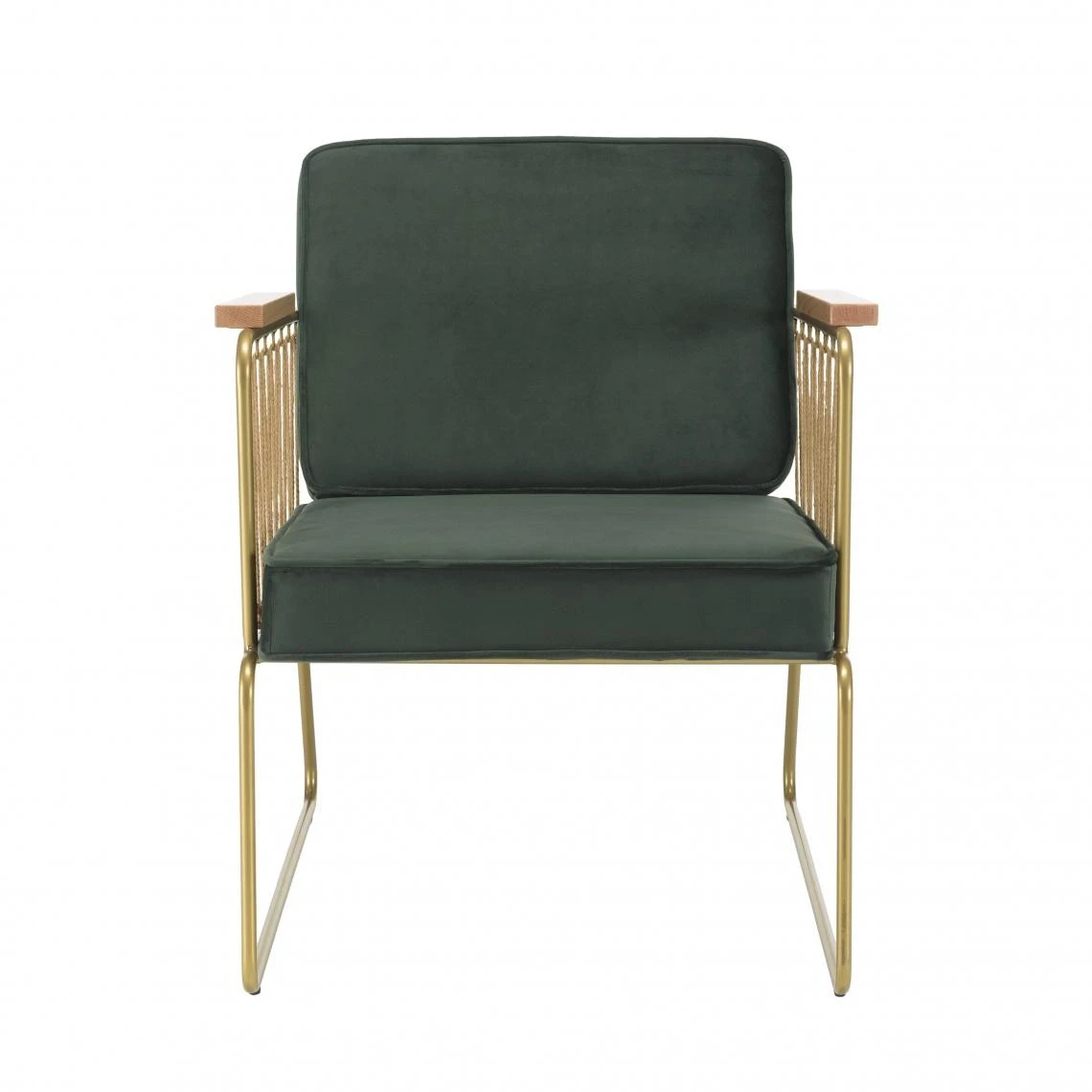 Points forts MACABANE Fauteuil velours vert foncé pieds métal doré accoudoir cordage