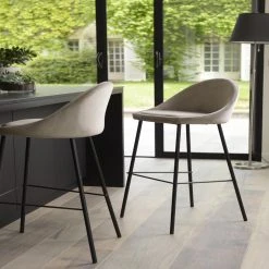 Privilégiez les meubles au design scandinave comme ce Lot De 2 Tabourets De Bar TOMVelours Chamois Pieds Métal Hauteur D’Assise 80Cm pour rehausser votre intérieur. Chaque pièce dispose d’un dossier enveloppant, d’un pose-pied et d’un piètement métallique de style compas.