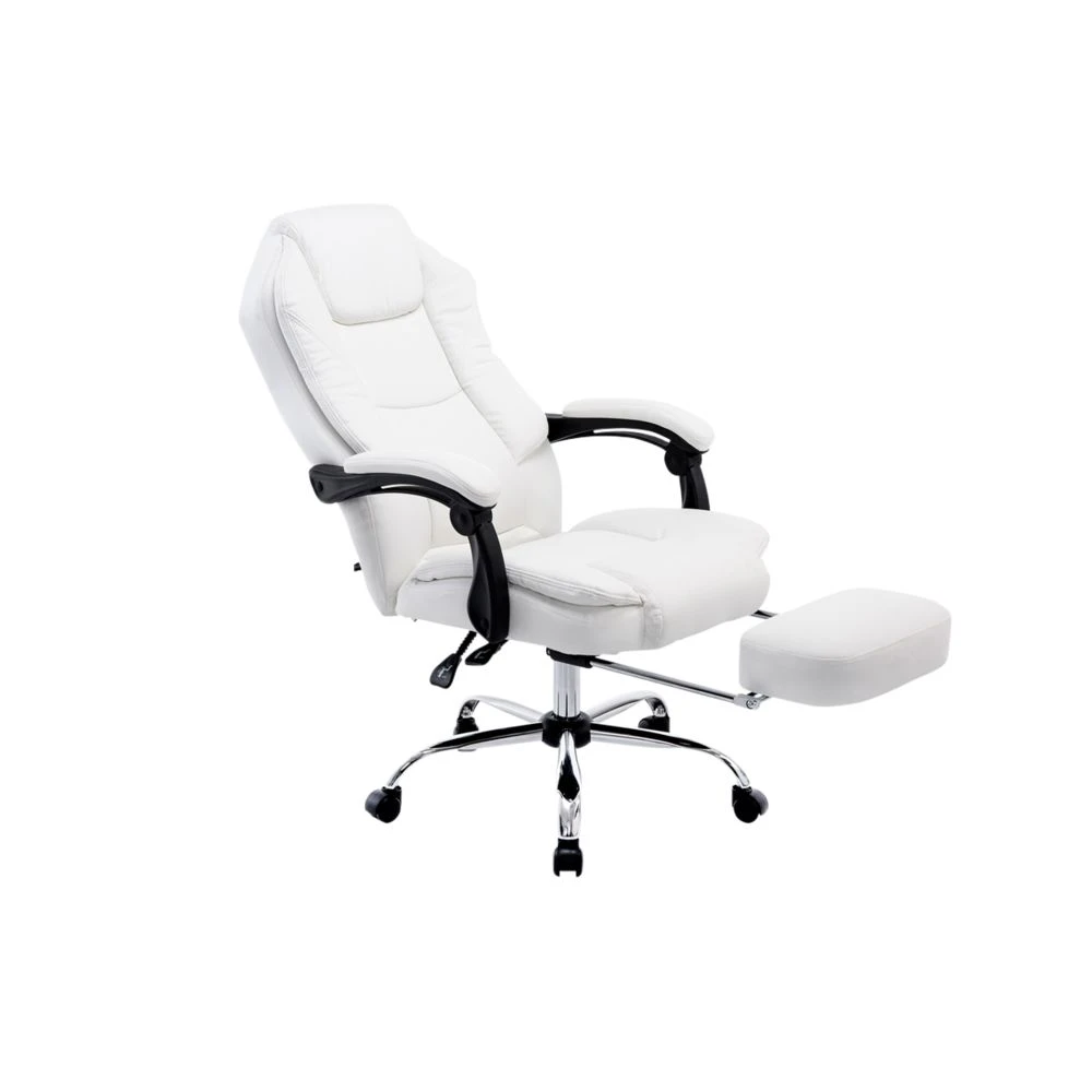 Esthetique chaise de bureau, fauteuil de bureau Ljubljana Chaise de bureau avec repose-pieds Largeur totale:67 cm Hauteur totale:114 cm – 124 cm Profondeur totale:64 cm Poids (kg):17 kg Hauteur accoudoir:67 – 77 cm Hauteur du dossier:77 cm Siège matériel:Simili cuir (100% polyuréthane) Livraison Condition:oui Cadre matériel:Métal au look chromé