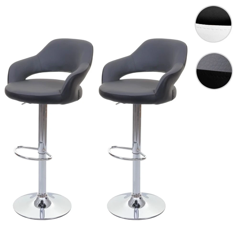 Points forts Mendler 2x tabouret de bar HWC-F16, chaise de comptoir avec dossier, rotatif, similicuir ~ gris/blanc