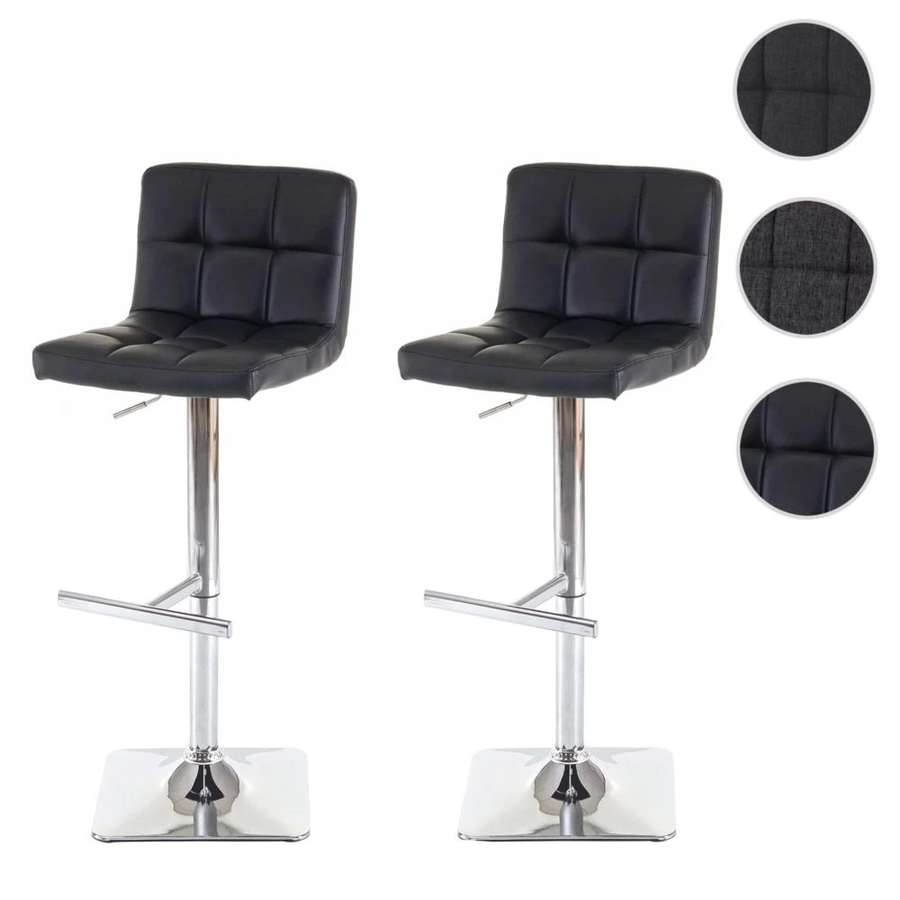 Points forts Mendler 2x tabouret de bar Kavala, chaise bar/comptoir, avec dossier ~ noir, similicuir, pied en acier chromé