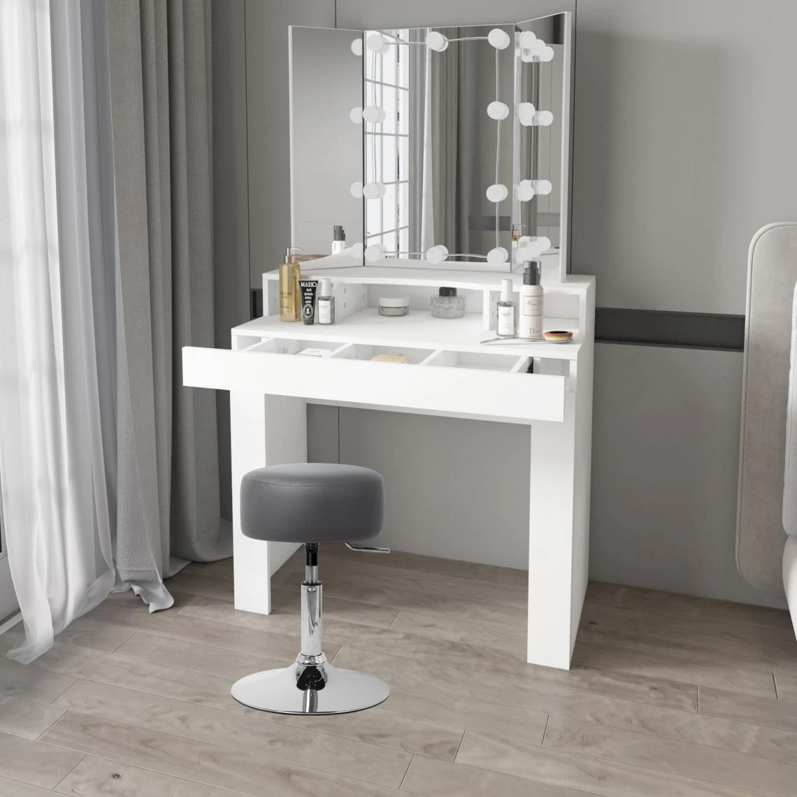 Points forts ML design modern living Tabouret de maquillage rembourré rond pouf gris foncé hauteur réglable en acier
