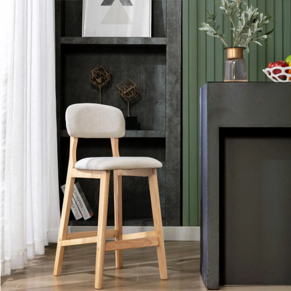 Points forts Moloo CLIFF – Chaise de bar en tissu coloris Lin et bois massif(x2)