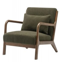 Points forts Moloo ZACK – Fauteuil lounge avec coussin Bouclette Army et bois teinté noyer