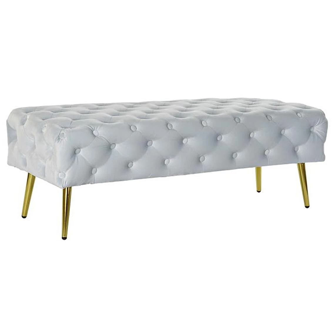Points forts Pegane Banquette en métal et velours coloris bleu ciel et pieds doré- Longueur 120 x Profondeur 45 x Hauteur 40 cm