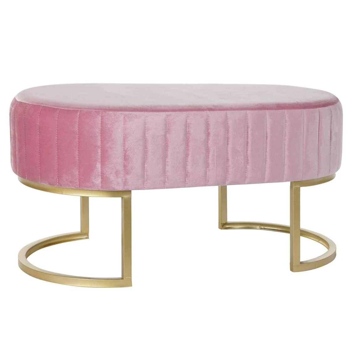 Points forts Pegane Banquette en métal et velours rose – Longueur 90 x Profondeur 50 x Hauteur 45 cm