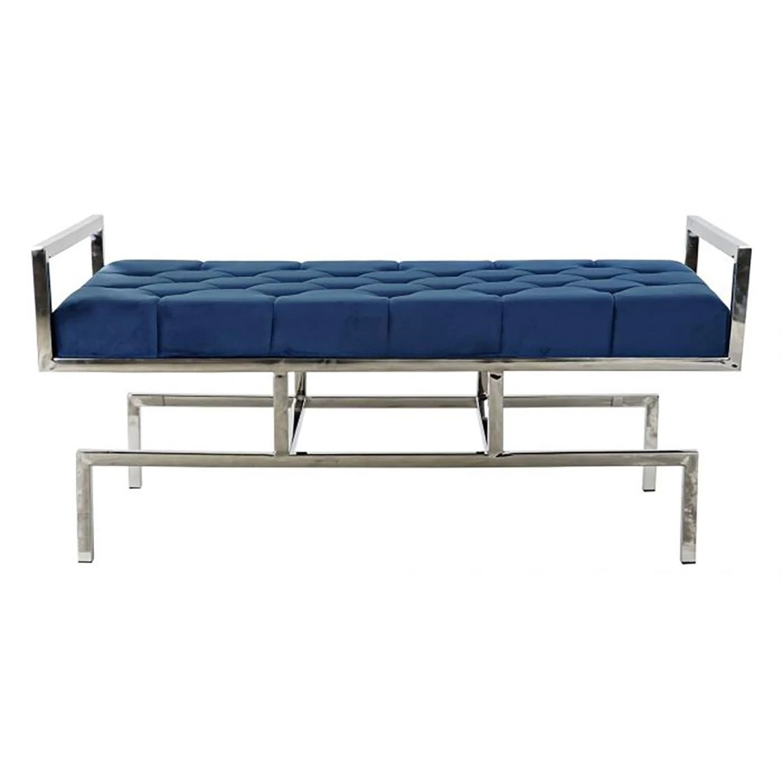 Points forts Pegane Banquette en velours bleu et pieds en acier – Longueur 97 x Profondeur 44 x Hauteur 46 cm