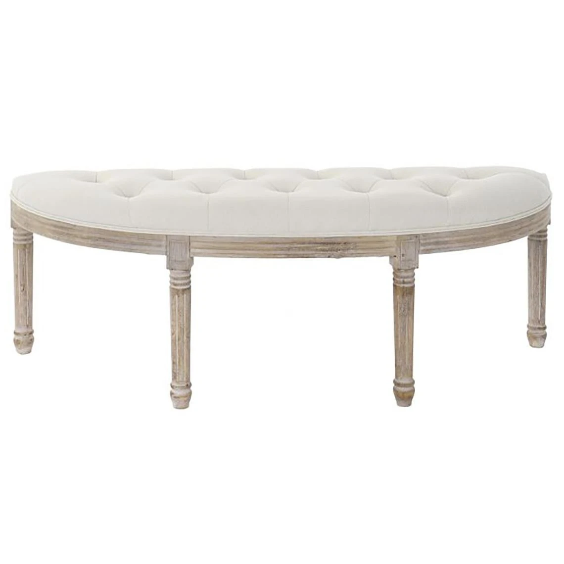 Points forts Pegane Banquette en velours et bois de caoutchouc coloris Beige / naturel – Longueur 125 x Profondeur 43 x Hauteur 48 cm