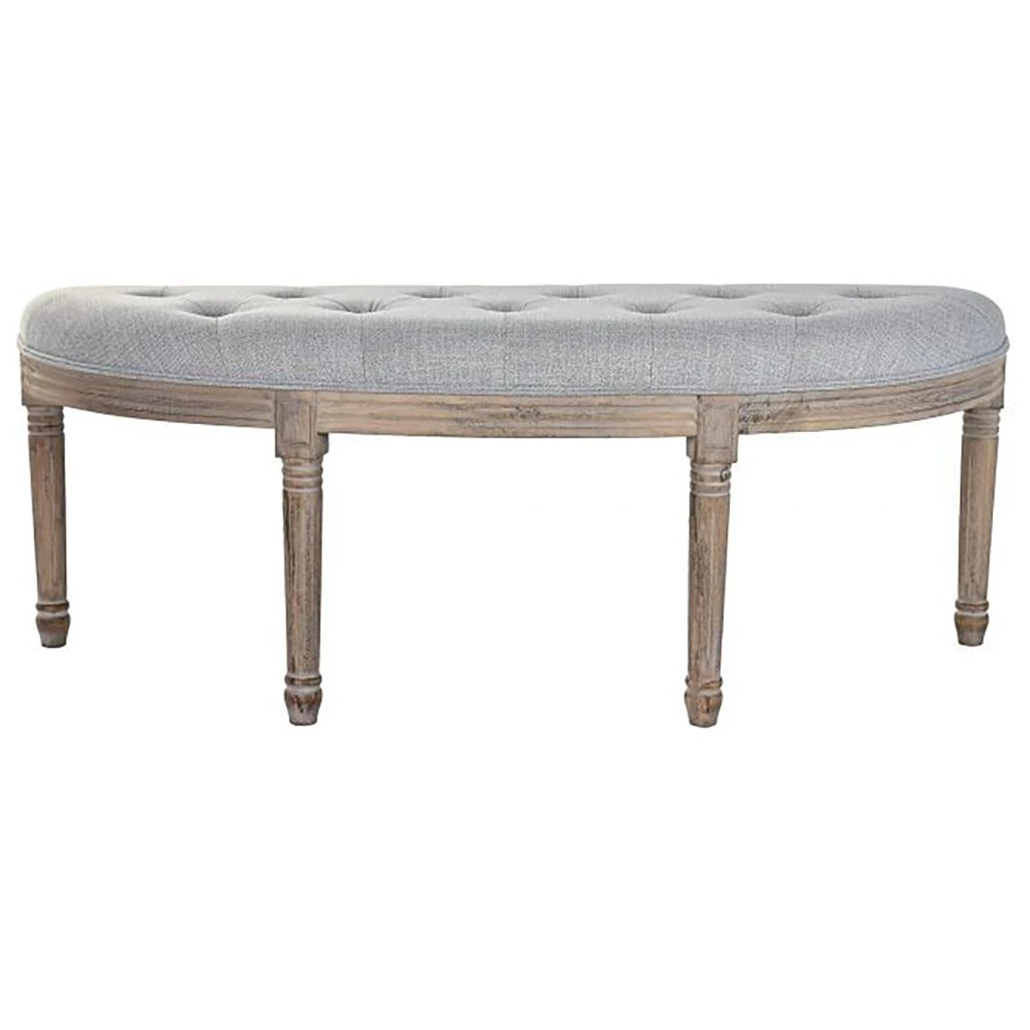 Banquette en bois de caoutchouc et velours coloris gris clair /Naturel