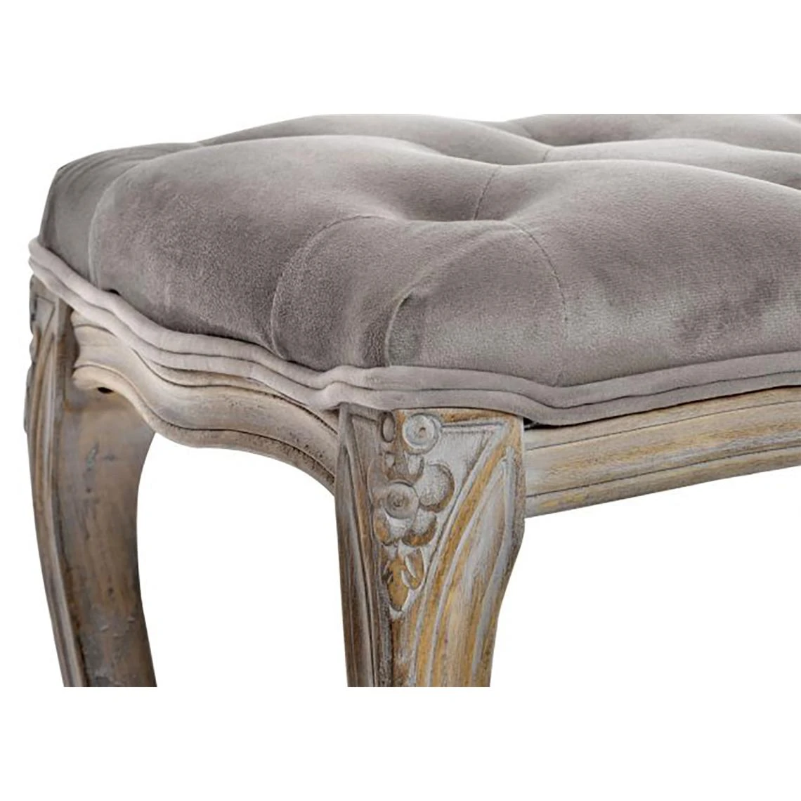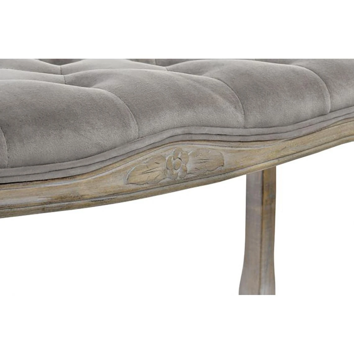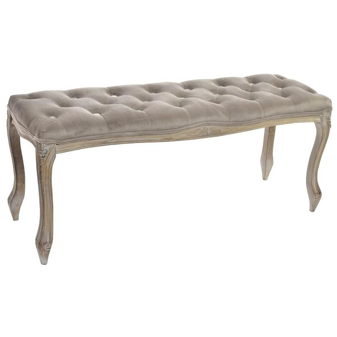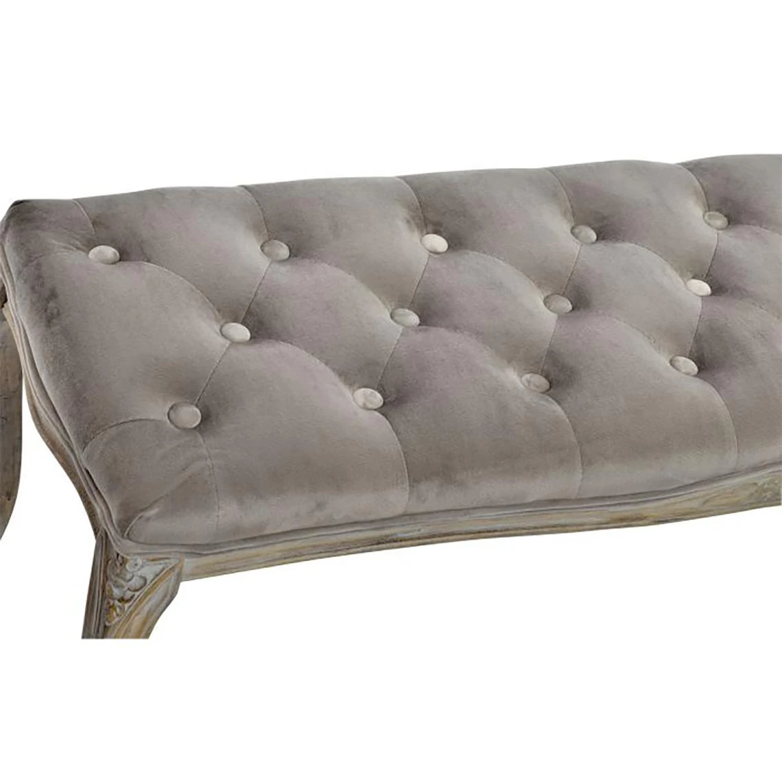 Banquette en bois de caoutchouc et velours coloris gris