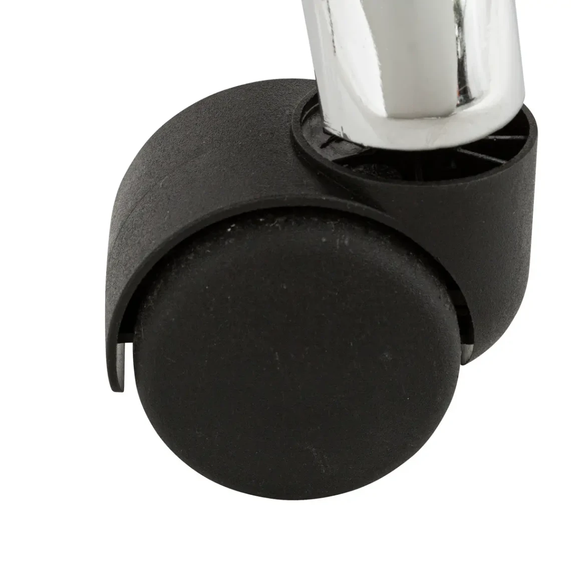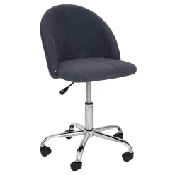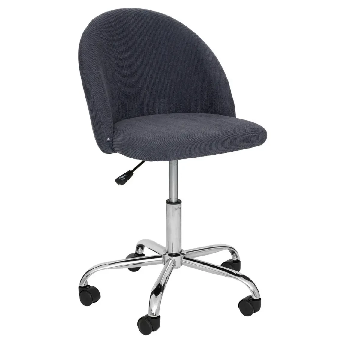 Chaise de bureau en velours coloris gris foncé avec une assise en polyester rembourrée en mousse polyuréthane et pieds croisés situés au centre en métal.
