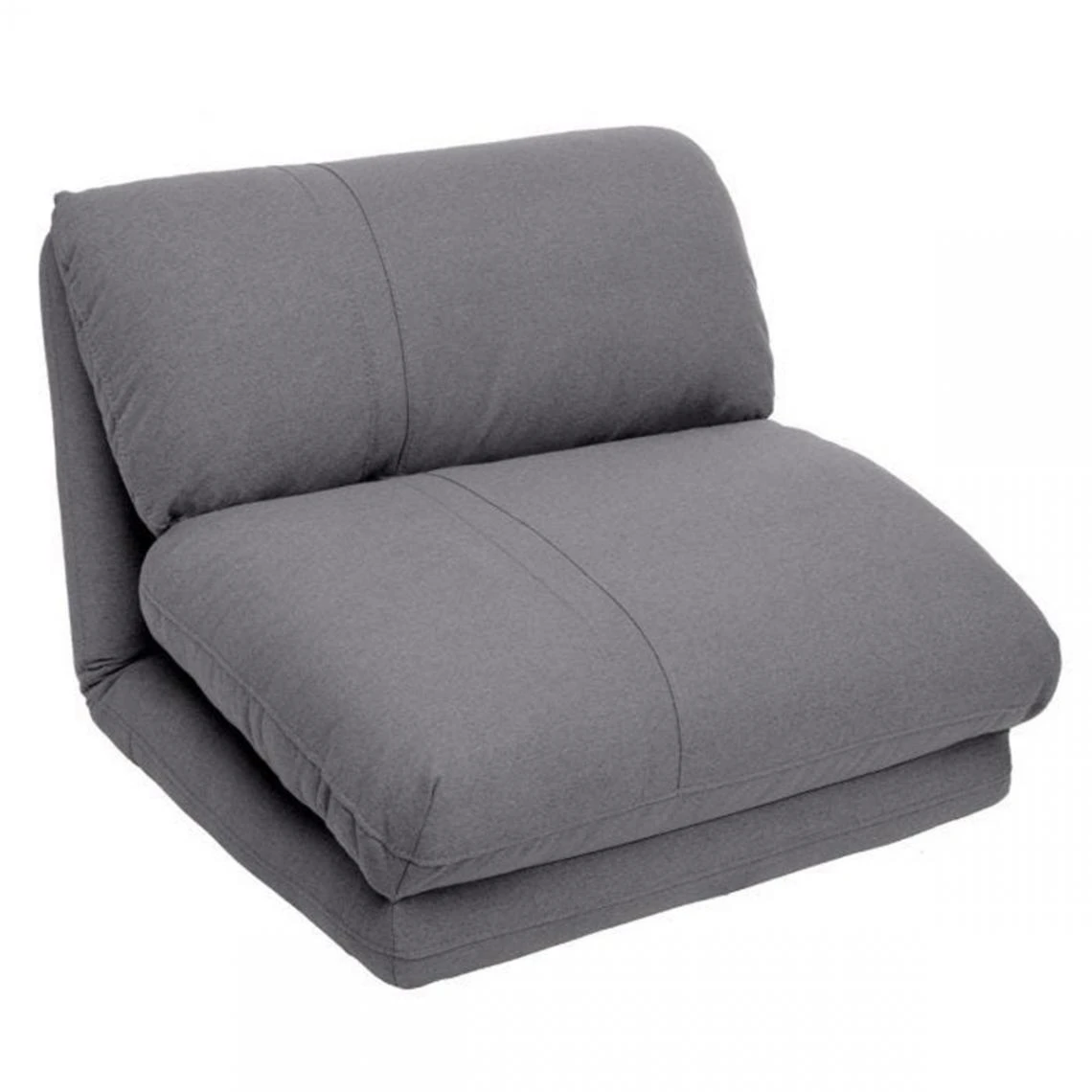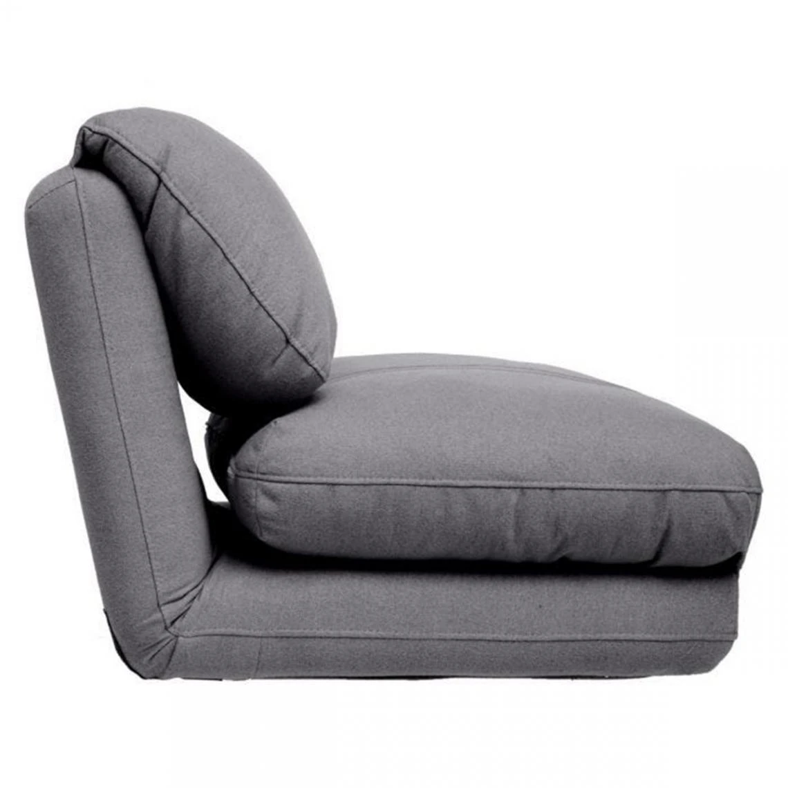 Enveloppe en tissu et coussin garni de coton. Assise d’une hauteur de 26 cm. Se déplie pour former un lit 209 x 78 x 58 cm, convenant pour un adulte ou un enfant.