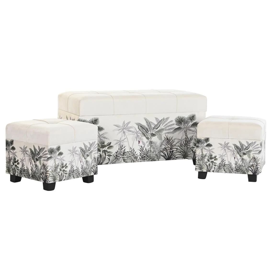 Ensemble de 3 banquettes / Coffres en MDF et polyester coloris beige motif tropical