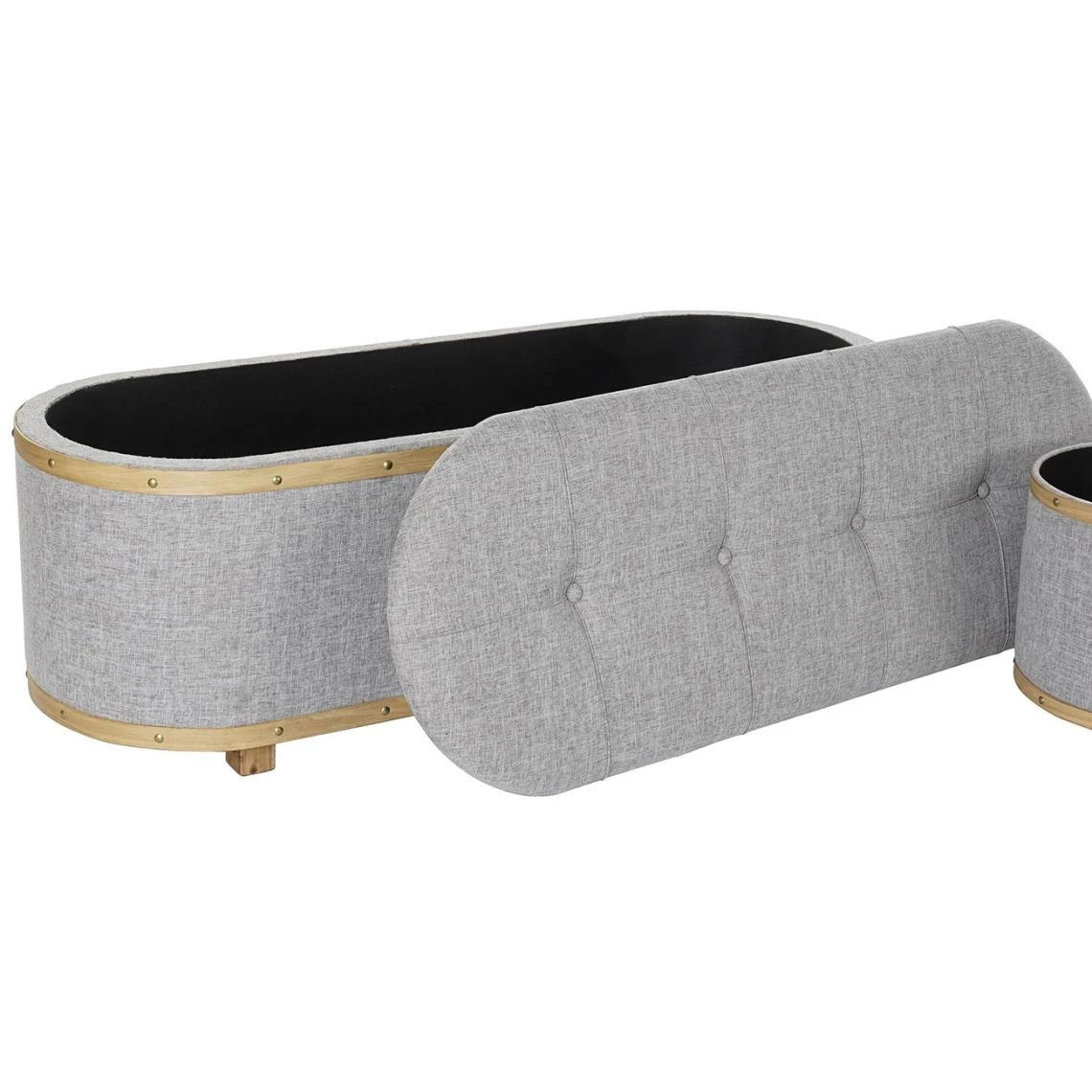 Ensemble de 4 banquettes / Coffres en bois et polyester coloris gris