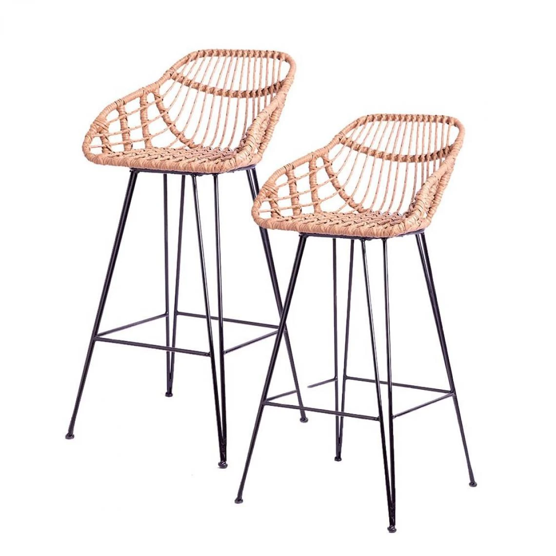 - CARACTÉRISTIQUES TECHNIQUES : utilisation : intĂ©rieur et extĂ©rieur, quantitĂ© : x2 tabourets; style : bohème; couleur structure: noir; matière structure : acier; matière assise : polyrotin; couleur polyrotin : naturel; Dimensions : L. 50 x l. 50 x H. 103 cm; hauteur d’assise : 72 cm; tabourets livrĂ©es dĂ©jĂ montĂ©s; livrĂ© en 1 carton; dimensions du colis : 95 x 55 x 55 cm; poids colis : 17Kg.