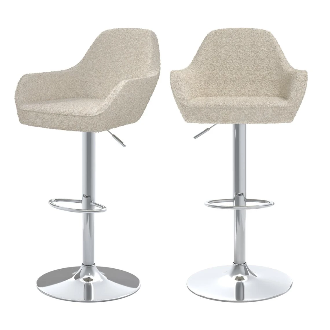 Cette paire de chaises de bar offre un rembourrage moelleux et confortable. Elle est dotée d’un repose-pied toujours bienvenu et d’un pied en métal chromé. Blanc cassé et effet argenté forment ainsi une association au charme scandinave. Fonctionnelle, elle s’ajuste en hauteur et vous pourrez donc l’installer devant une table haute ou un mange-debout. Comme son socle rond est particulièrement stable, cette assise convient à toute la famille.