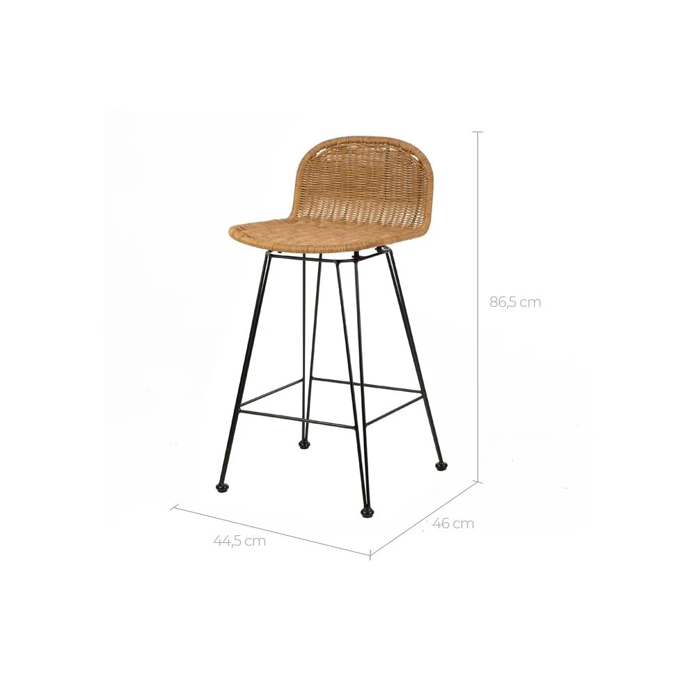 Chaise de bar mi-hauteur en résine tressée naturelle et pieds en métal pour l’intérieur et l’extérieur 63 cm (lot de 2) – Jigani –