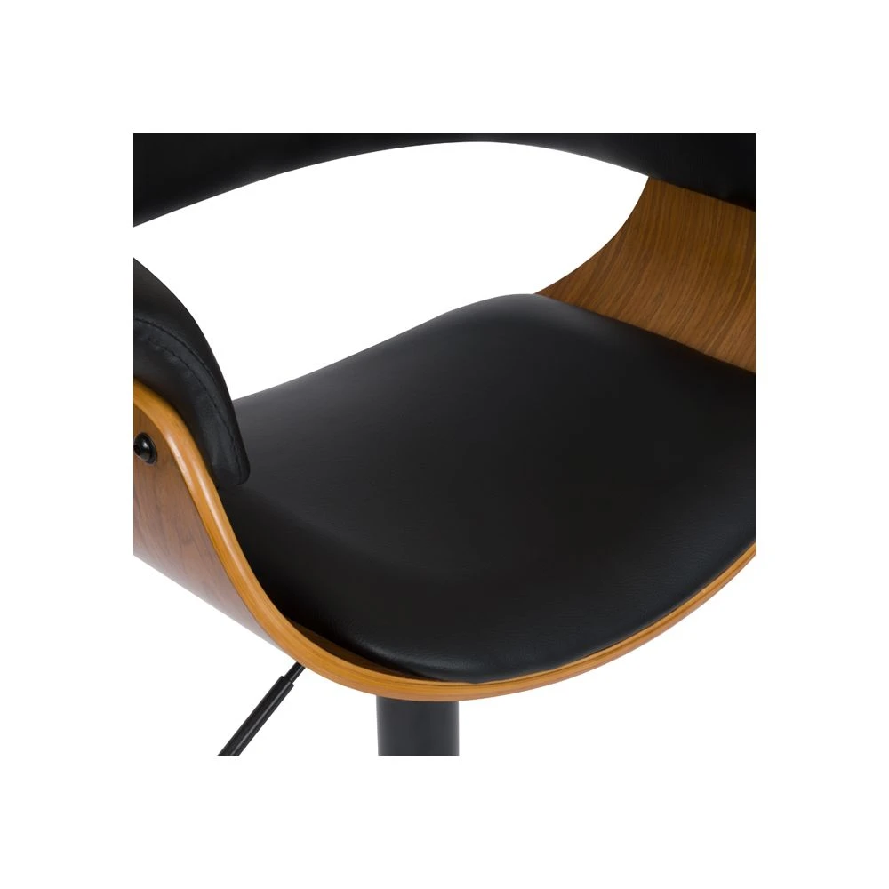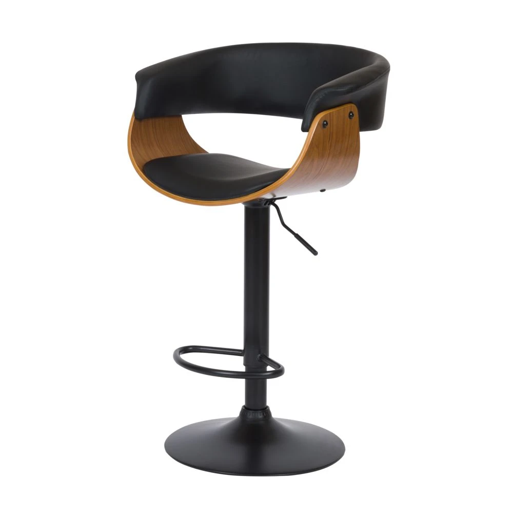 Chaise de bar réglable et qui pivote en PU noir et bois plaqué noyer, pieds en métal 55.5/81 cm – Basile –