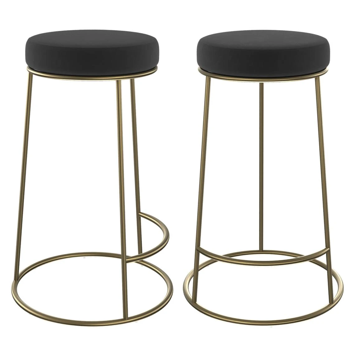 Points forts Rendez Vous Deco Tabouret de bar Kendal en velours noir 63 cm (lot de 2)