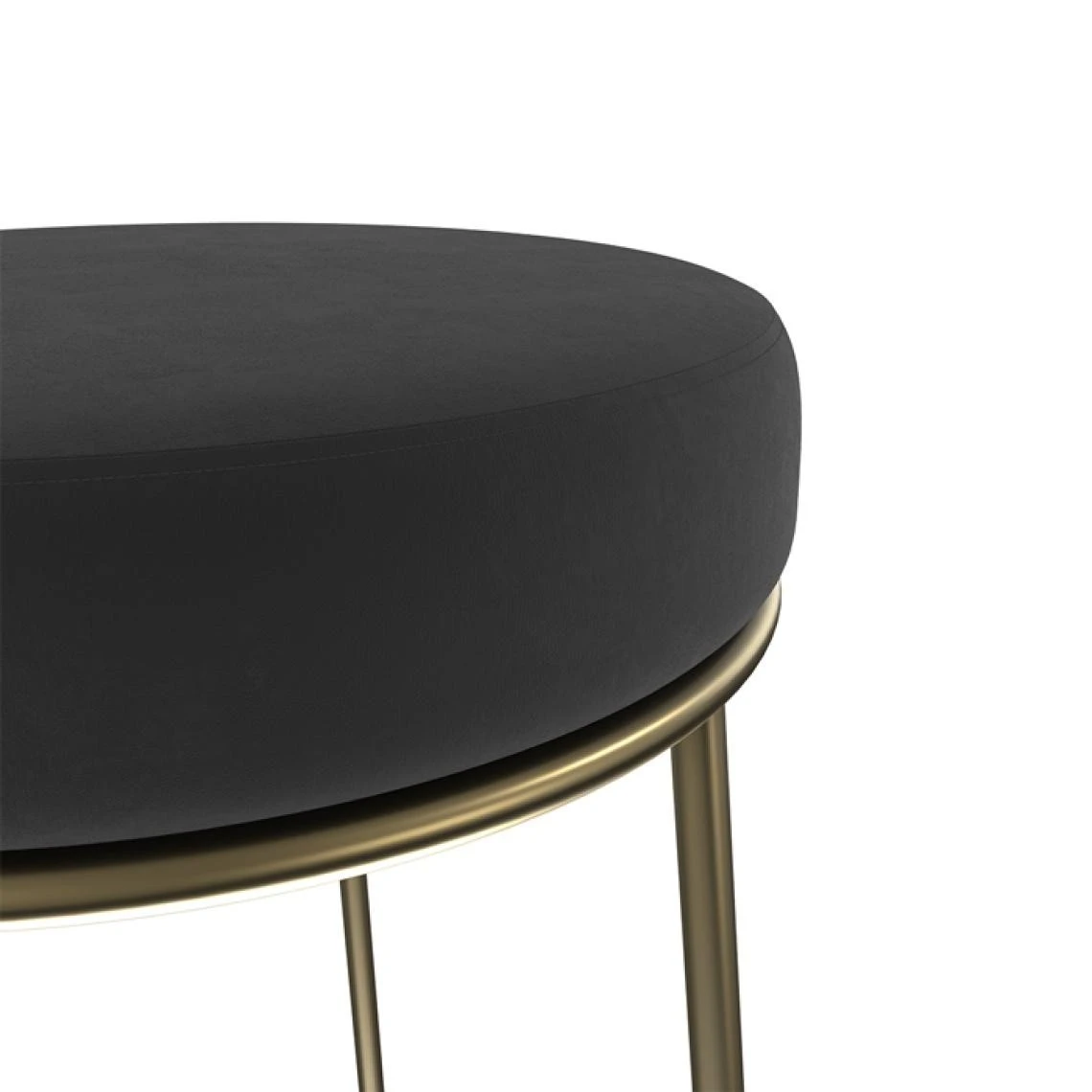 Élégant, pratique et aérien, sont les trois meilleurs adjectifs pour caractériser notre lot de 2 tabourets Kendall. Réalisé dans les règles de l’art avec des matériaux de qualité, ils se composent d’une délicate assise rembourrée; en velours noir, très soyeuse, réhaussée; par un fin piétement en métal doré joliment ajouré.