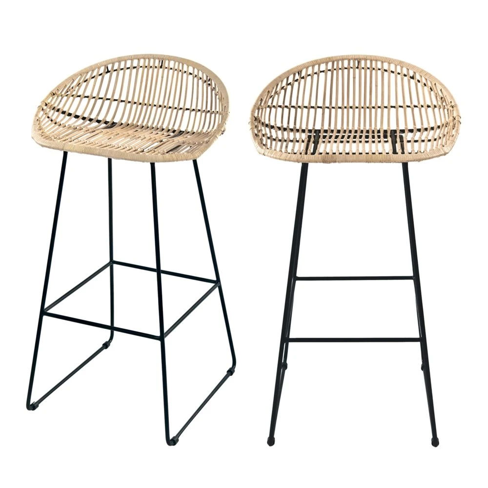 Tabouret de bar en rotin naturel pieds en métal 77 cm (lot de 2) – Lotus –