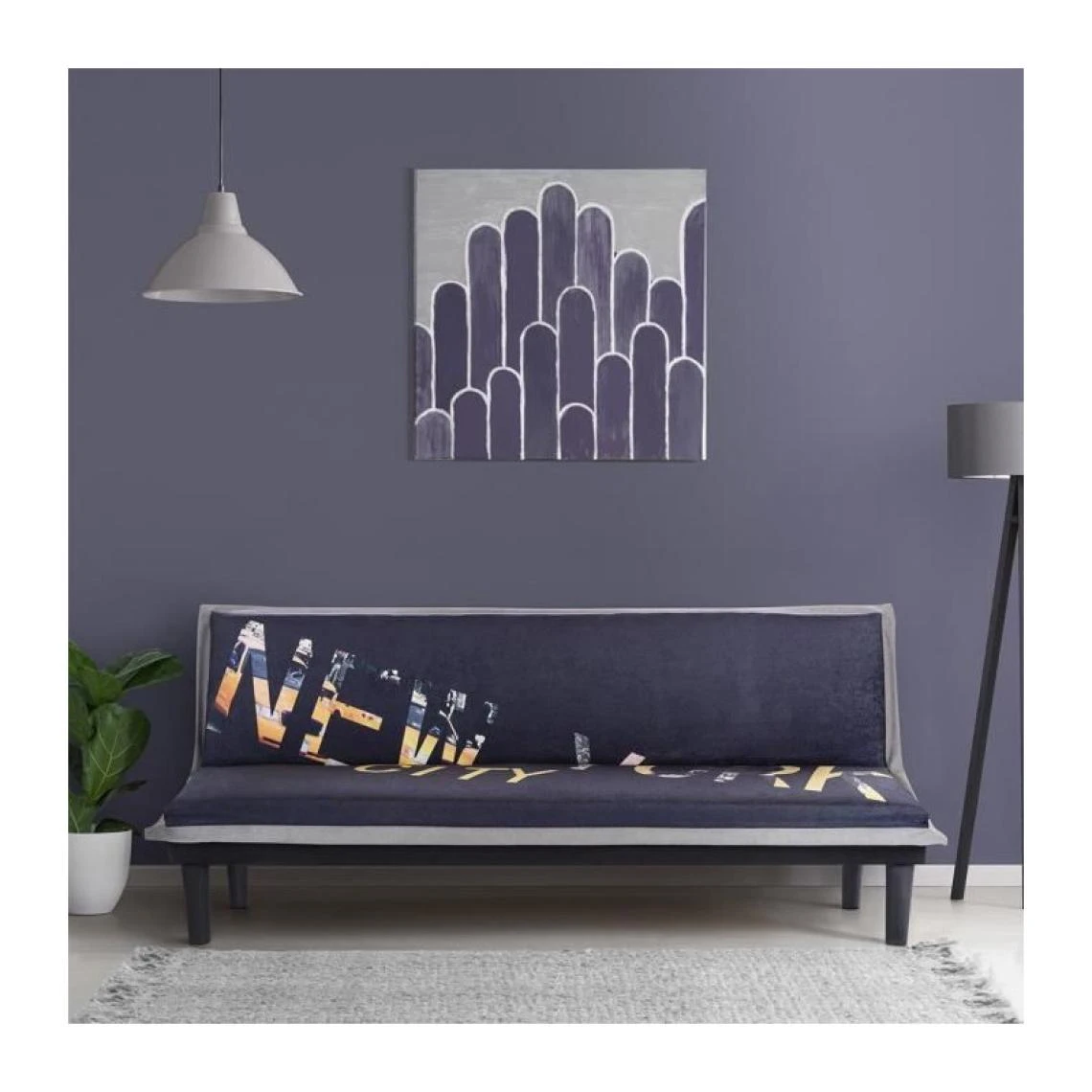 CASSY Banquette clic clac 3 places imprimé New York – Tissu gris – L 179 x P 79 x H 74 cm