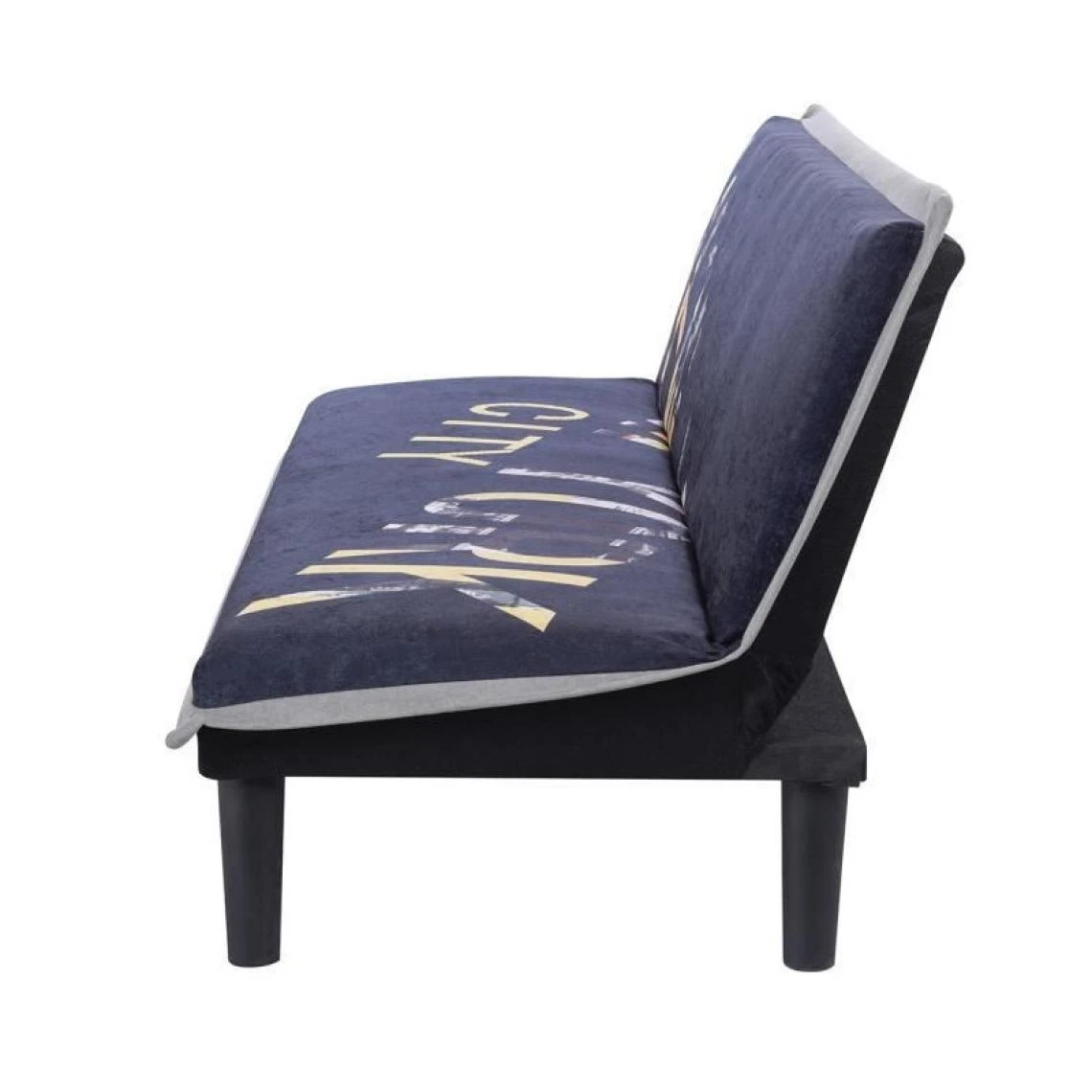 Points forts Sans Marque Banquette clic clac 3 places CASSY – Imprimé New York – Tissu Noir/Gris – L 179 x P 79 x H 74 cm