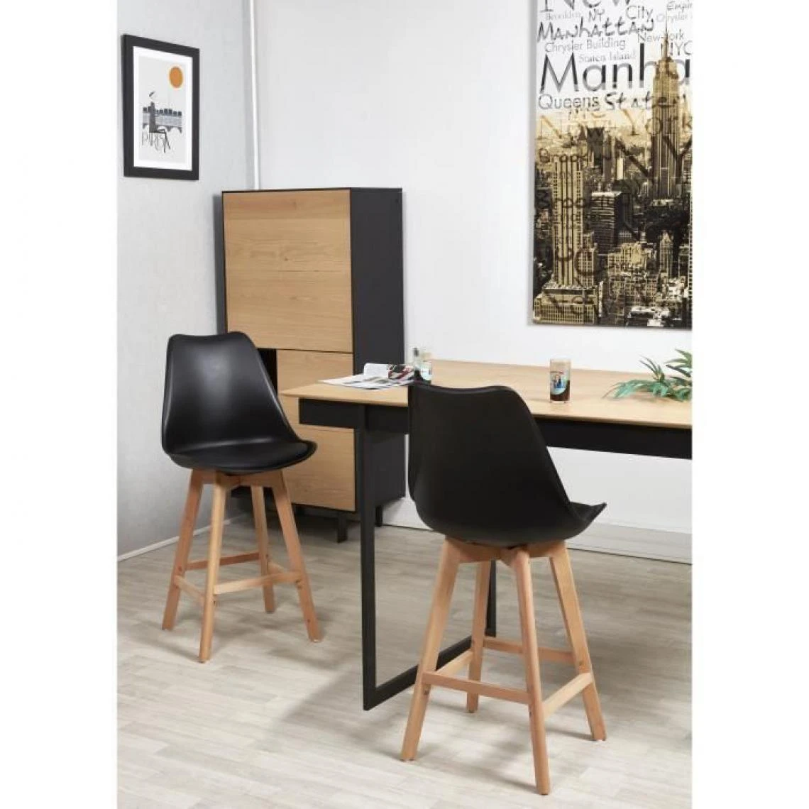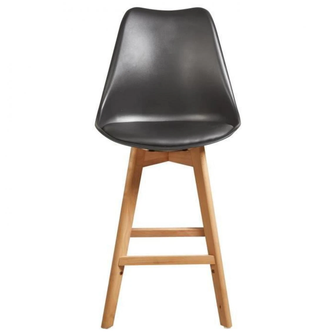 BJORN Lot de 2 tabourets de comptoir et Ă®lot noirs – Style et design scandinave – Coque en plastique et pieds en bois hetre massif – Revetement simili – Garnissage : mousse polyurĂ©thane 20 kg/mÂł – Dimensions du tabouret : L 48,5 x P 53 x H 100 cm – Dimensions de l’assise : L 48,5 x P 53 x H 65 cm.