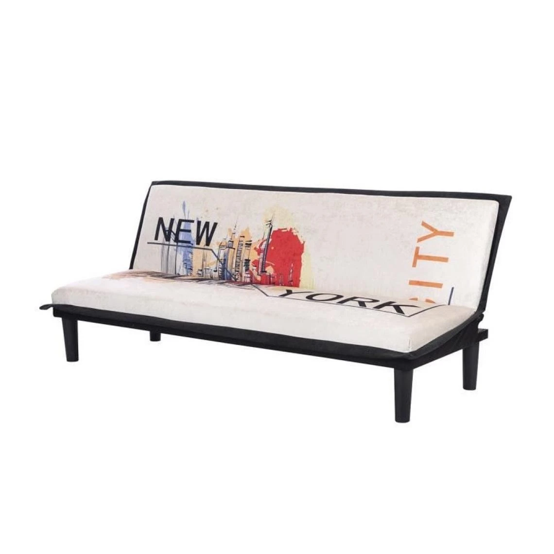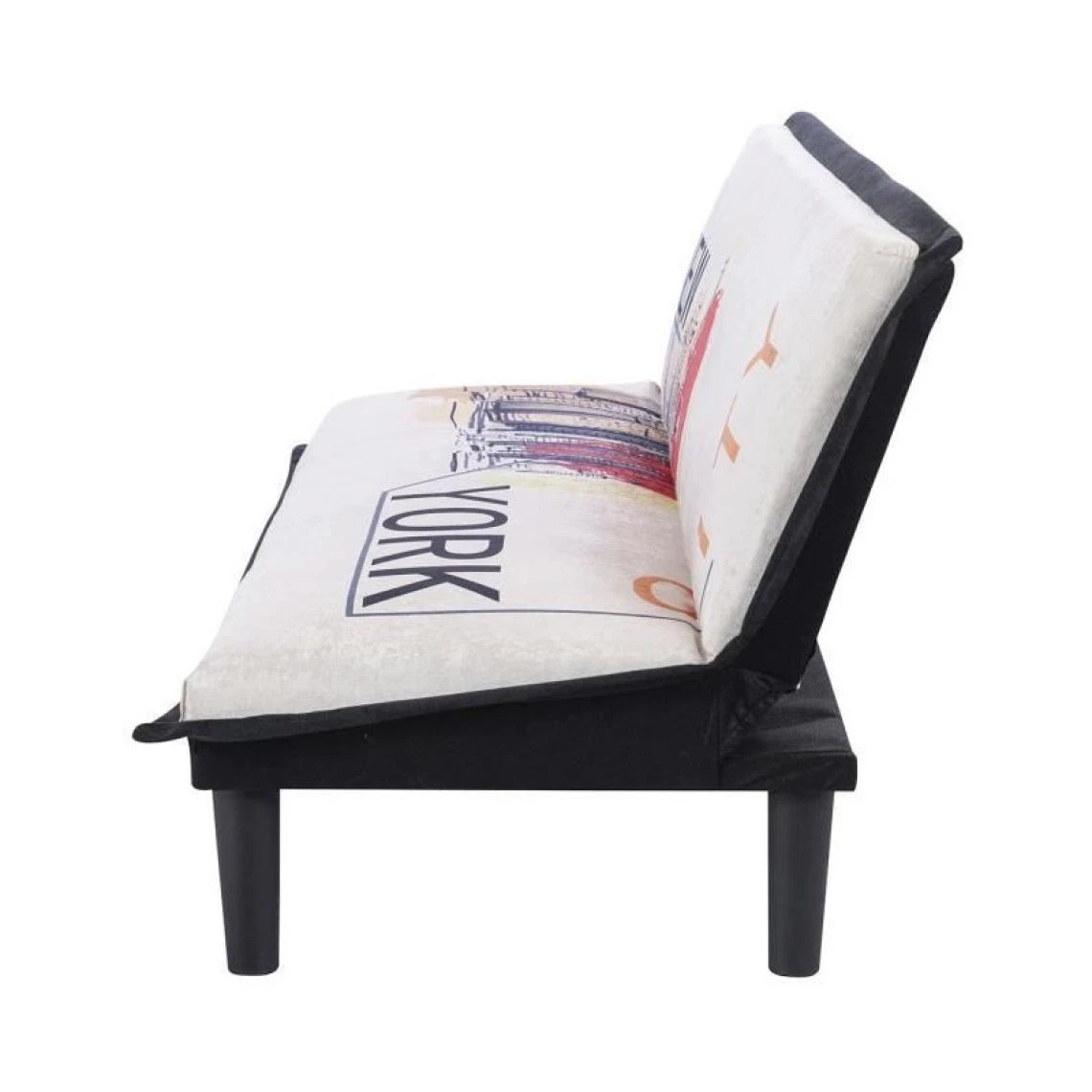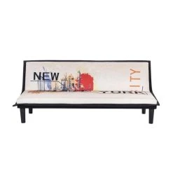 Points forts Sans Marque CASSY Banquette clic clac 3 places imprime New York – Tissu gris clair – L 179 x P 79 x H 74 cm