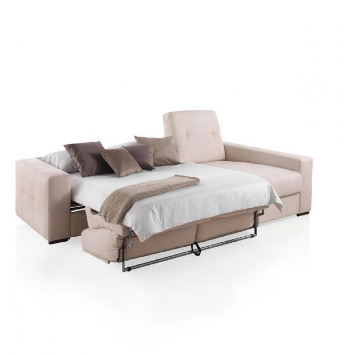 Le canapĂ© a une ouverture rotative qui permet Ă un lit de sortir sans avoir Ă retirer les coussins d’assise ou de dossier. L’assise et le dossier sont amovibles.