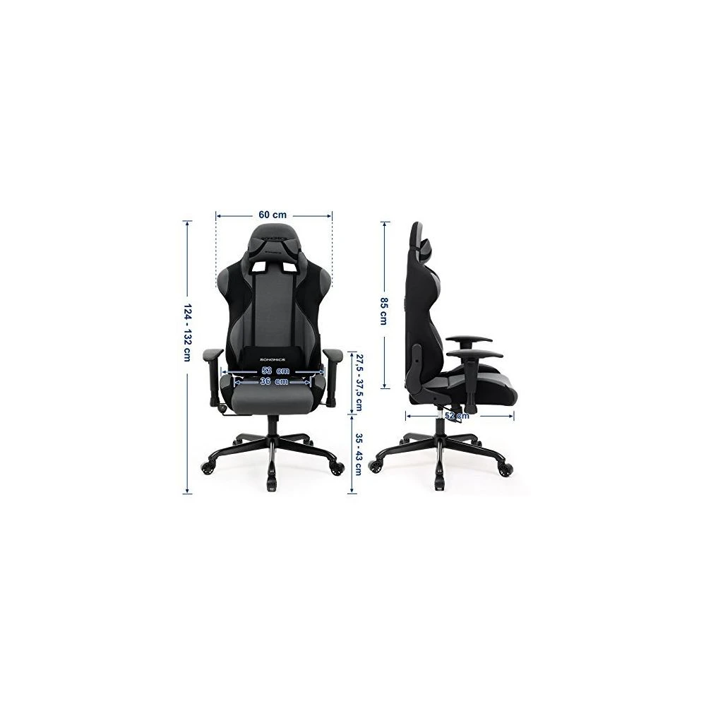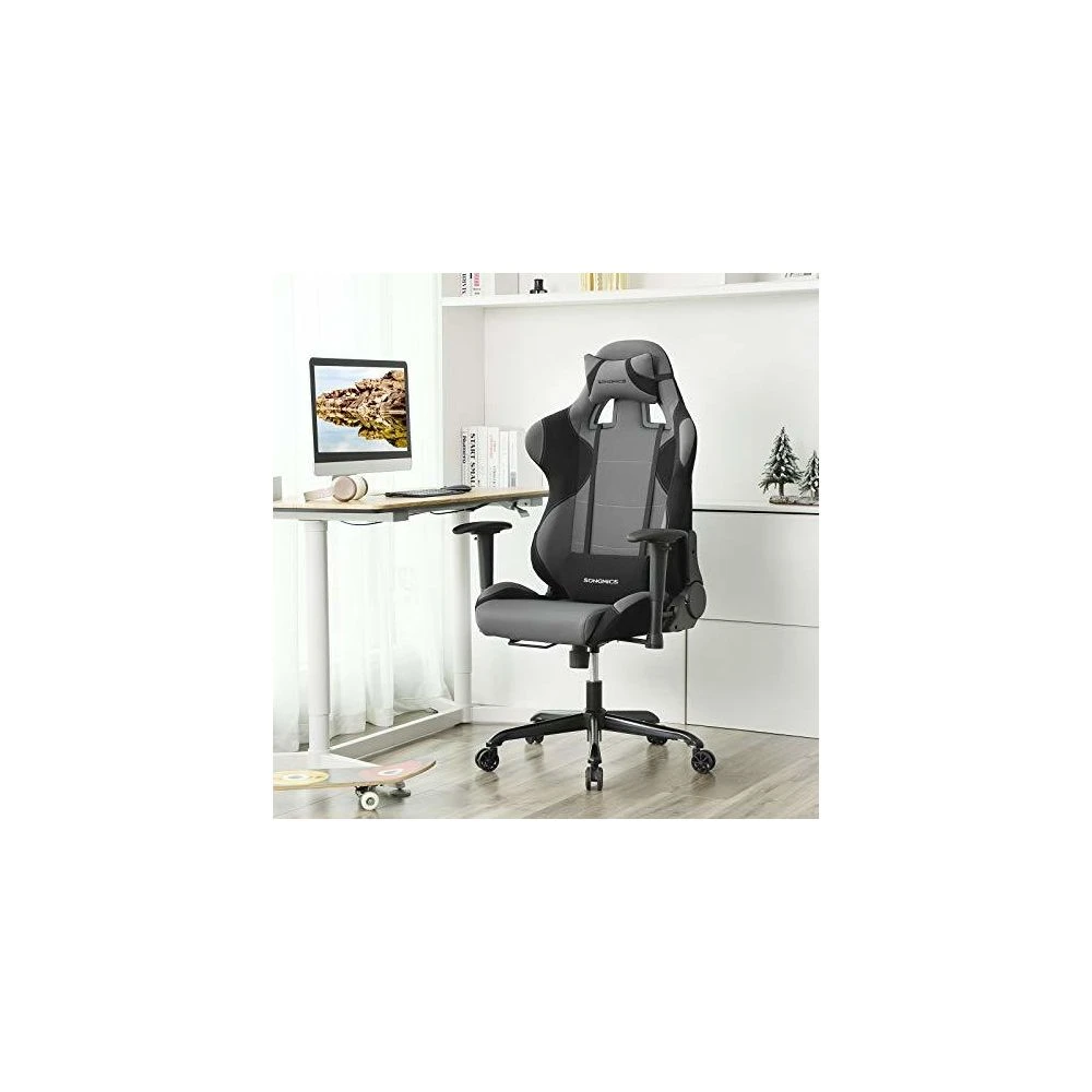 Points forts Songmics Chaise Gamer Fauteuil de Bureau Racing Sport avec Support Lombaire et Coussin Noir, Gris RCG02G