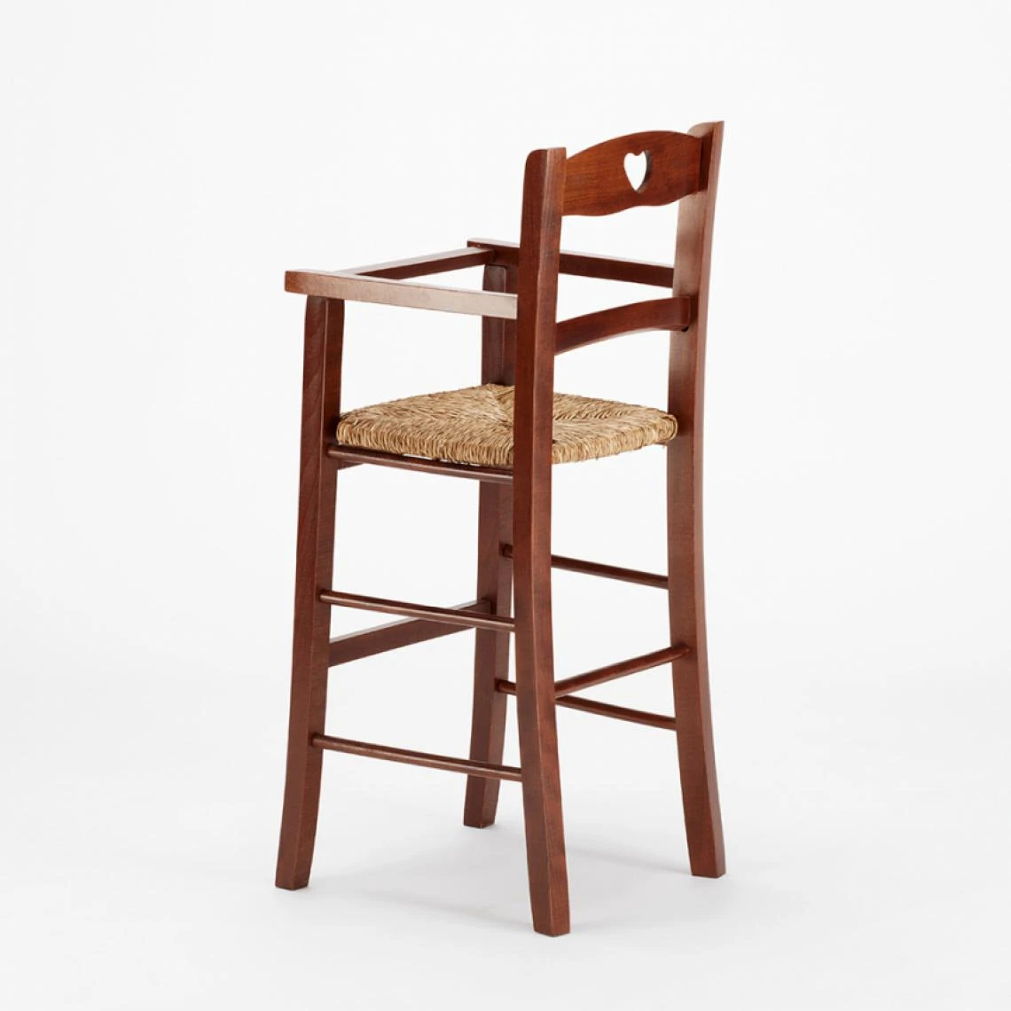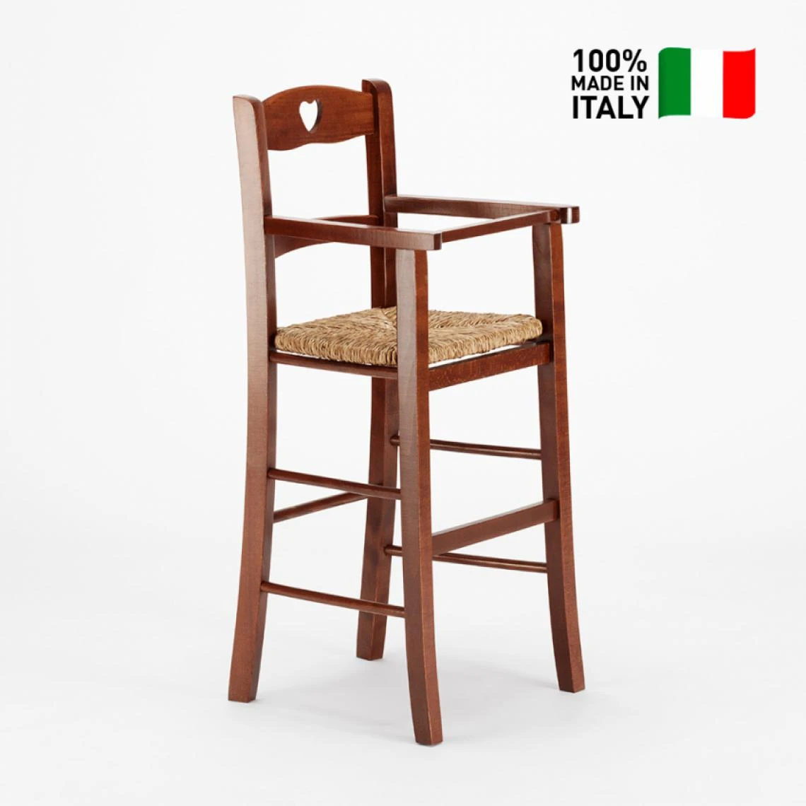 Le haut tabouret pour enfants avec assise en paille Love est la solution idéale pour tous ceux qui veulent que même les plus petits soient à la table des grands, en utilisant un produit fiable et sûr pour les particuliers ou pour les professionnels comme les restaurants ou les bars. La chaise haute Love pour enfants est entièrement fabriquée en Italie, avec des matériaux sûrs et fiables de haute qualité et conformément aux lois en vigueur.Love est conçu et construit avec une structure en bois de qualité, avec des pieds en forme sabres pour optimiser la stabilité et la résistance dans le but de fournir à l’utilisateur un excellent produit, parfait pour tous vos besoins et exigences.De plus, la structure en bois du tabouret est composée d’un siège en paille de qualité supérieure qui, contrairement aux tabourets économiques traditionnels, est rembourré suivant des processus de fabrication minutieux pour assurer, notamment à long terme, des caractéristiques fonctionnelles et esthétiques durables assurant ainsi un confort bien supérieur à la moyenne.Le design du tabouret de chaise haute Baby suit les courbes traditionnelle en s’accordant parfaitement à votre maison mais aussi aux restaurants et aux bars. Son style classique peut s’adapter aux environnements à la fois modernes, rustiques et accueillants.Caractéristiques techniques du haut tabouret pour enfant Love: Hauteur totale: 86 cm Hauteur du dossier: 33 cm Largeur: 37,5 cm Profondeur: 37 cm Hauteur de l’assise: 54 cm Matériel. bois Design: Traditionnel Style: Classique Toutes les matières premières utilisées sont de haute qualité conformément à la réglementation en vigueur
