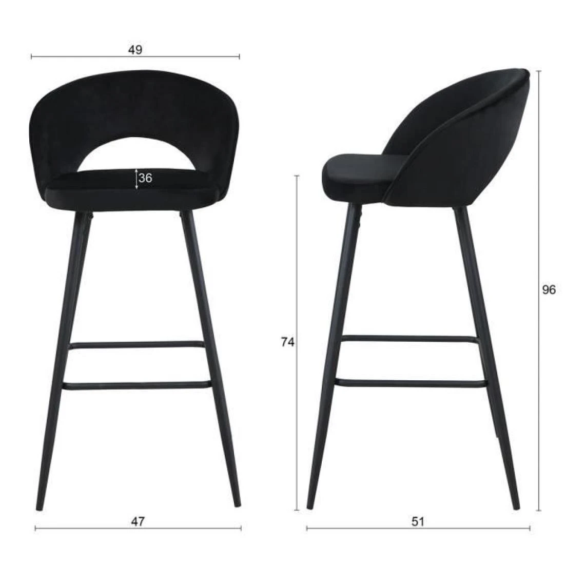 Points forts Tbs Lot de 2 tabourets de bar – Métal et velours noir – 44x52x97cm – CLARS