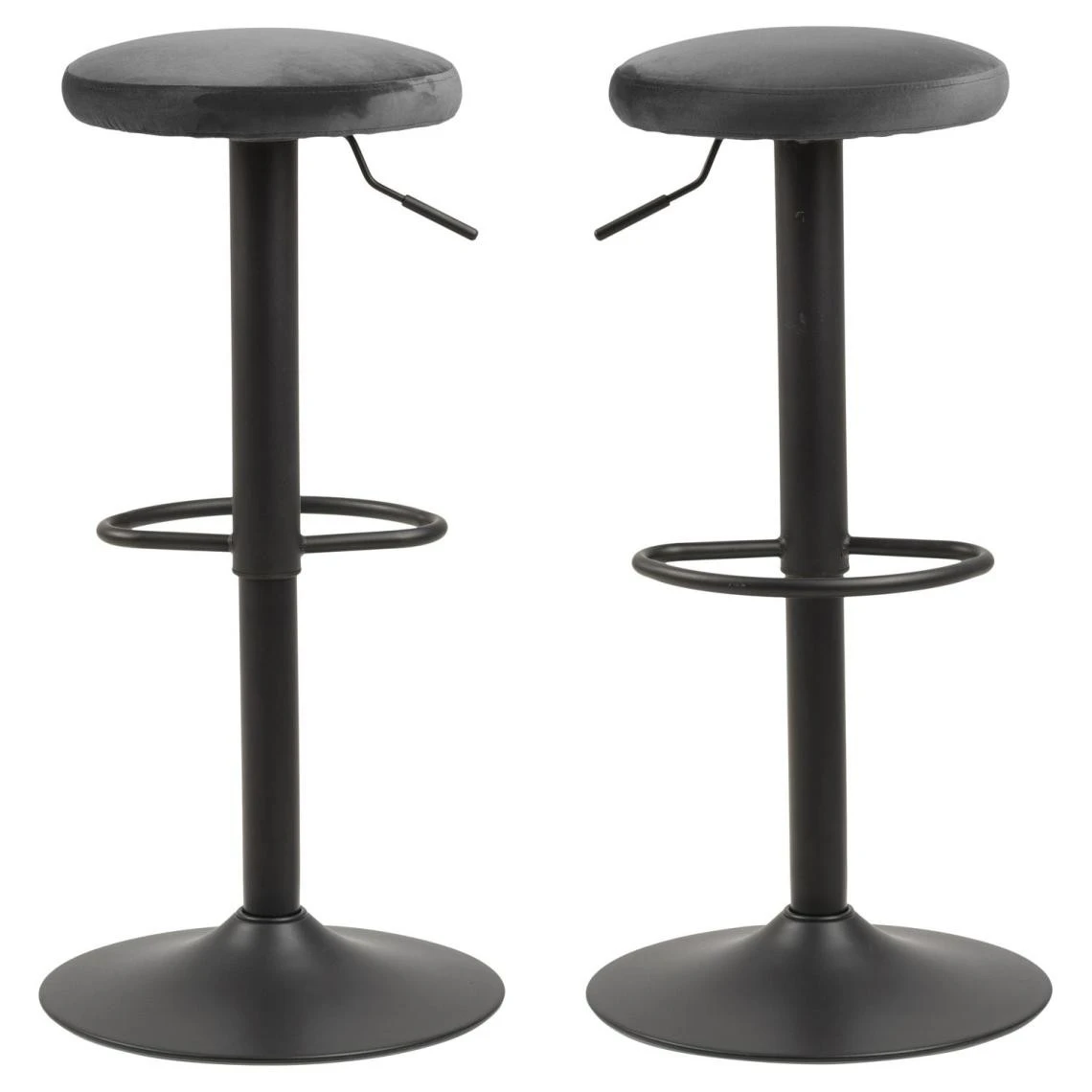 Points forts Toilinux Lot de 2 Tabourets de bar Finch avec repose pieds et hauteur réglable en tissu et métal – Gris et Noir